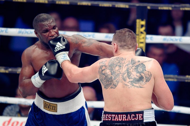 PA3_6269Walka wieczoru dla Mariusza Wacha. Podczas walki wieczoru na gali bokserskiej w Lubinie pokonał on Nigeryjczyka Gbenga Oloukuna. Walka nie rozstrzygnęła się nokautem, jednak Wach wygrał jednogłośnie na punkty. Polski bokser od początku prezentował się lepiej, wyprowadzał więcej ciosów, jednak nie były one na tyle mocne aby posłać rywala na deski. Dla Wacha była to trzecia walka po dłuższej, bo dwuletnej przerwie, związanej z różnymi problemami pozasportowymi, w tym dyskwalifikacją za stosowanie niedozwolonych środków.