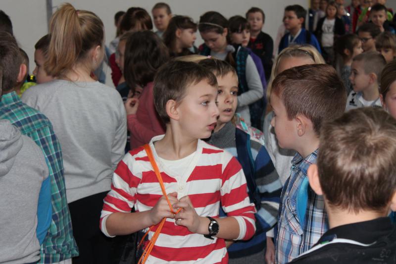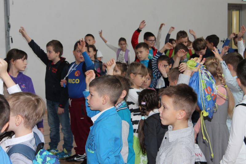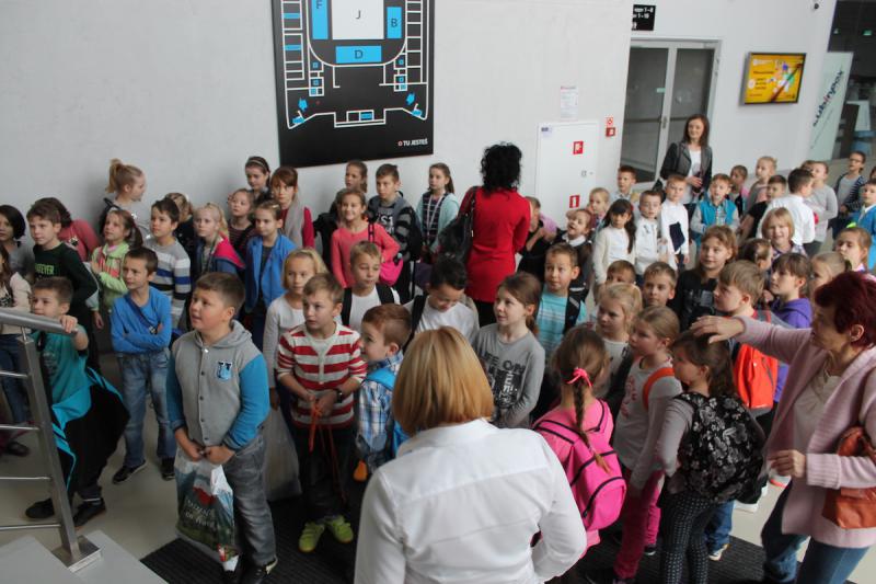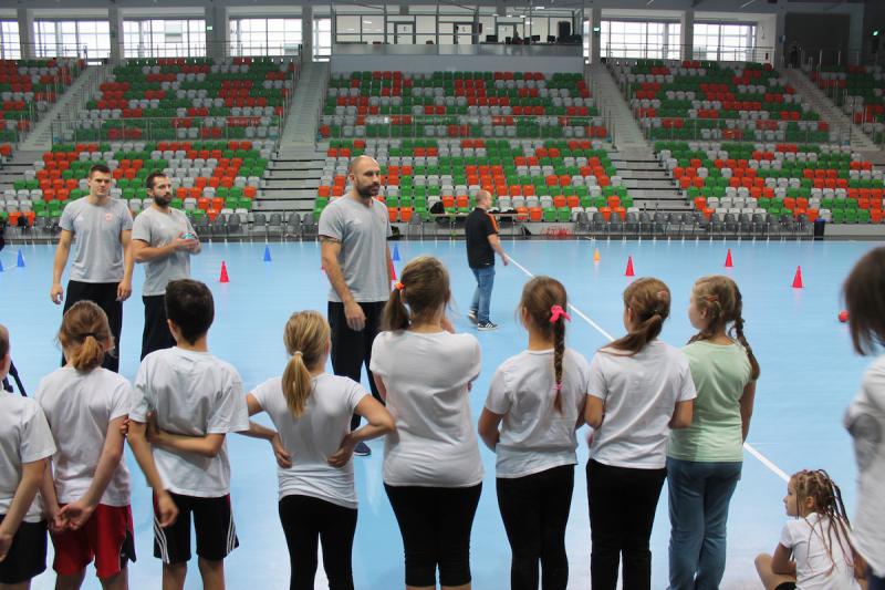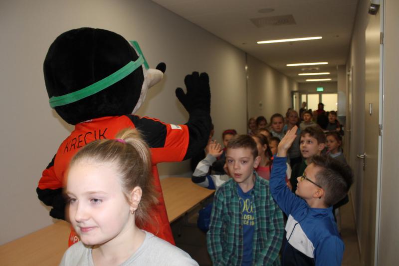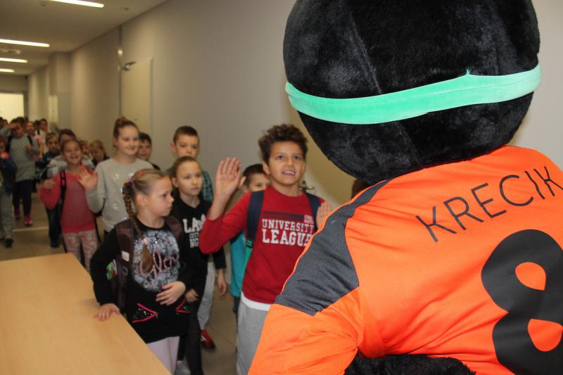 „WF super!” – te słowa dało się najczęściej słyszeć podczas lekcji wychowania fizycznego, którą poprowadzili piłkarze i piłkarki ręczne Zagłębia Lubin. Zanim odbyły się zajęcia dzieci zwiedziły halę Regionalnego Centrum Sportowego. Było zwiedzanie niemal każdego miejsca, w tym hali do squasha, sali konferencyjnej, sali VIP oraz siłowni i trybun. Na koniec dzieci udały się do szatni, gdzie przebrały się w stroje sportowe.