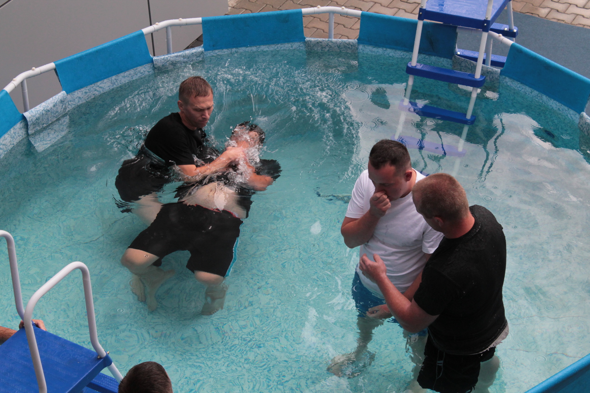 Cała procedura chrztu jest prosta lecz niezwykle widowiskowa ponieważ w wodzie zanurzane jest całe ciało.