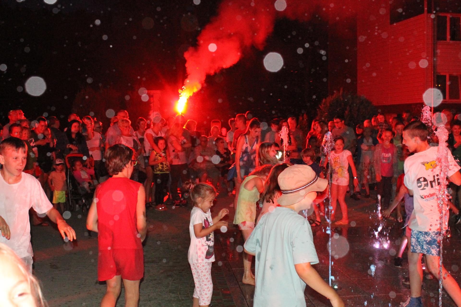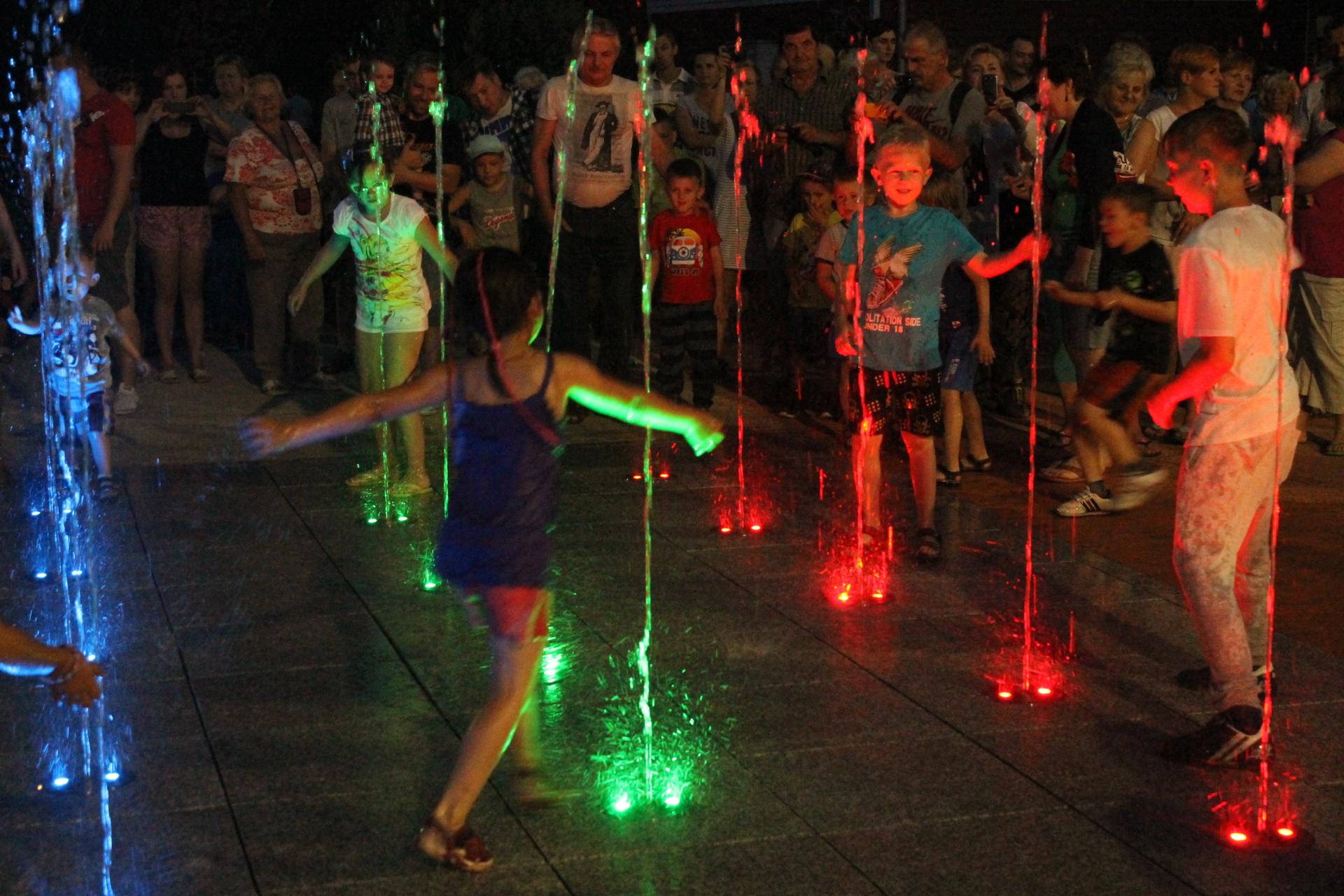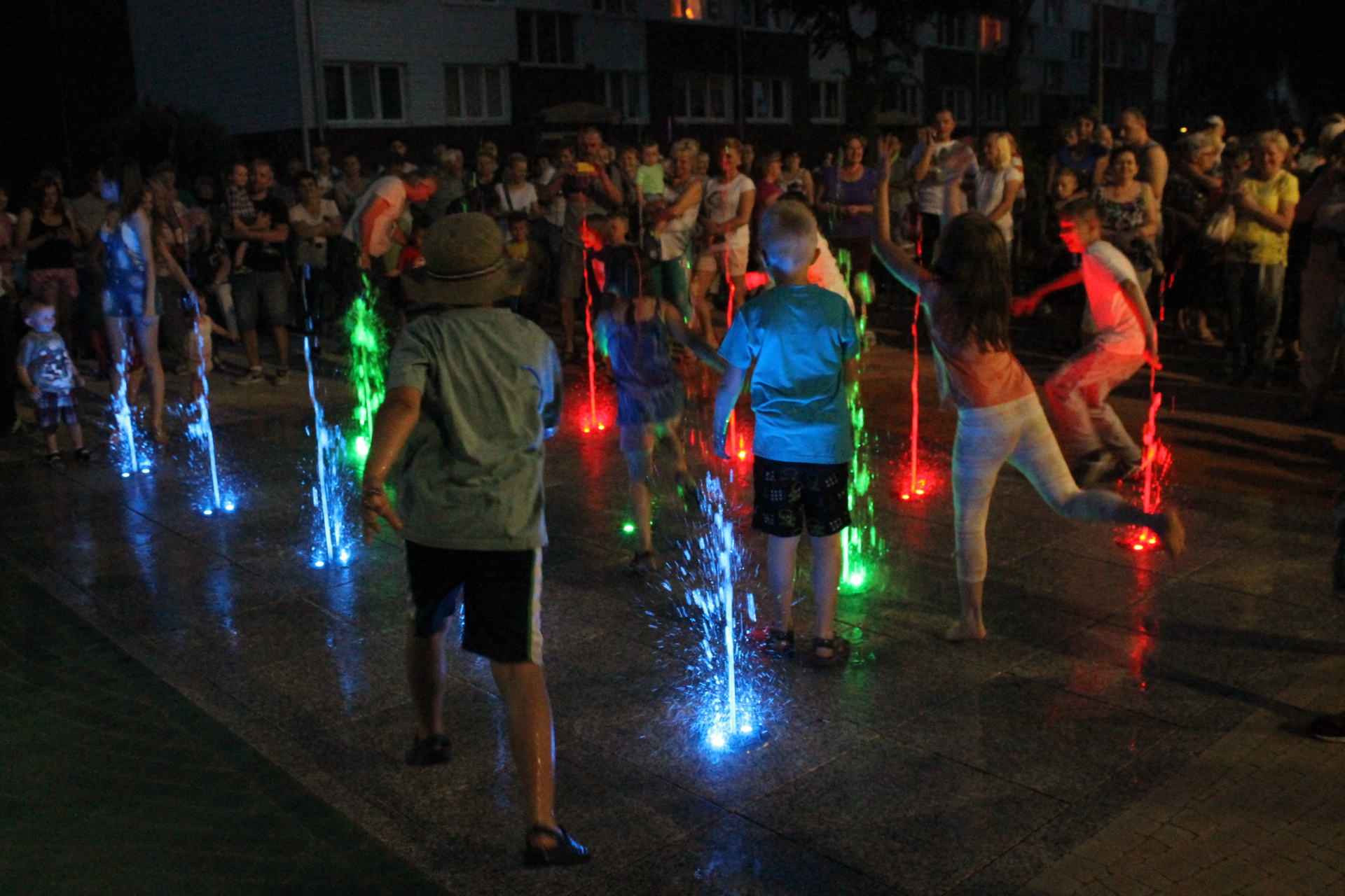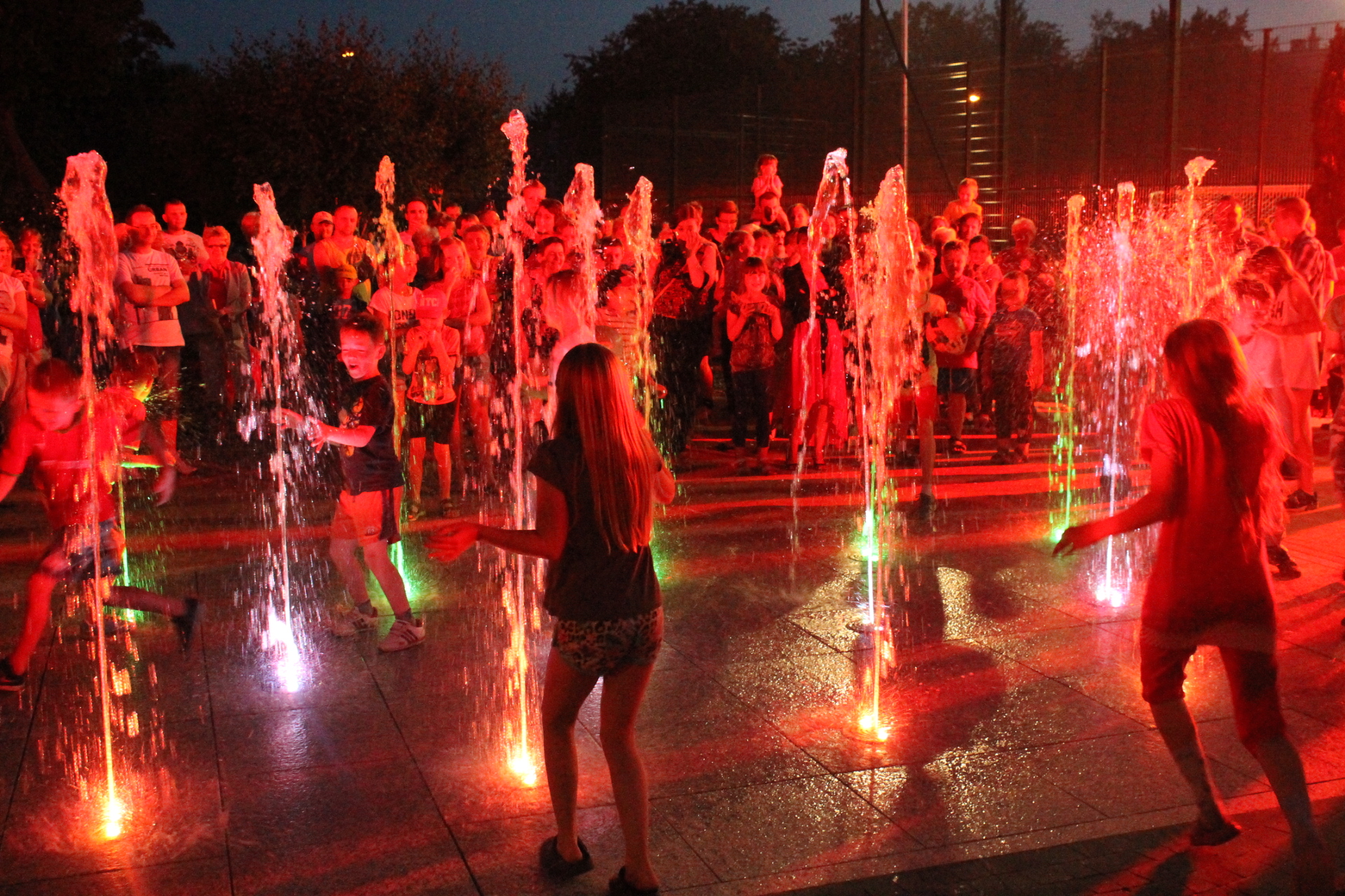 Fontanna przy ulicy Paderewskiego już działa. Dziś, punktualnie o godzinie 22 uruchomiono mechanizm, a z dysz poleciała biało – miedziano – zielona woda. Dla dzieci i młodzieży otwarto także nowe boisko.