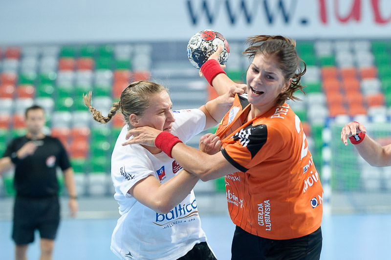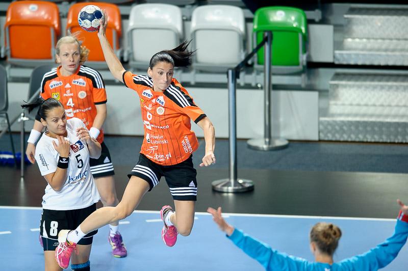 Pierwsza bramka turnieju była autorstwa Joanny Obrusiewicz. Kolejne trafienia zaliczyły zawodniczki ze Szczecina, które wyszły na prowadzenie. Podopieczne Bożeny Karkut od stanu 5:5 wrzuciły piąty bieg i na tablicy wyników było 10:7. W tym czasie trwał popis strzelecki Joanny Obrusiewicz, która zdobyła połowę bramek dla swojej drużyny. Jeszcze przed przerwą miedziowe podwyższyły swoje prowadzenie do czterech bramek.