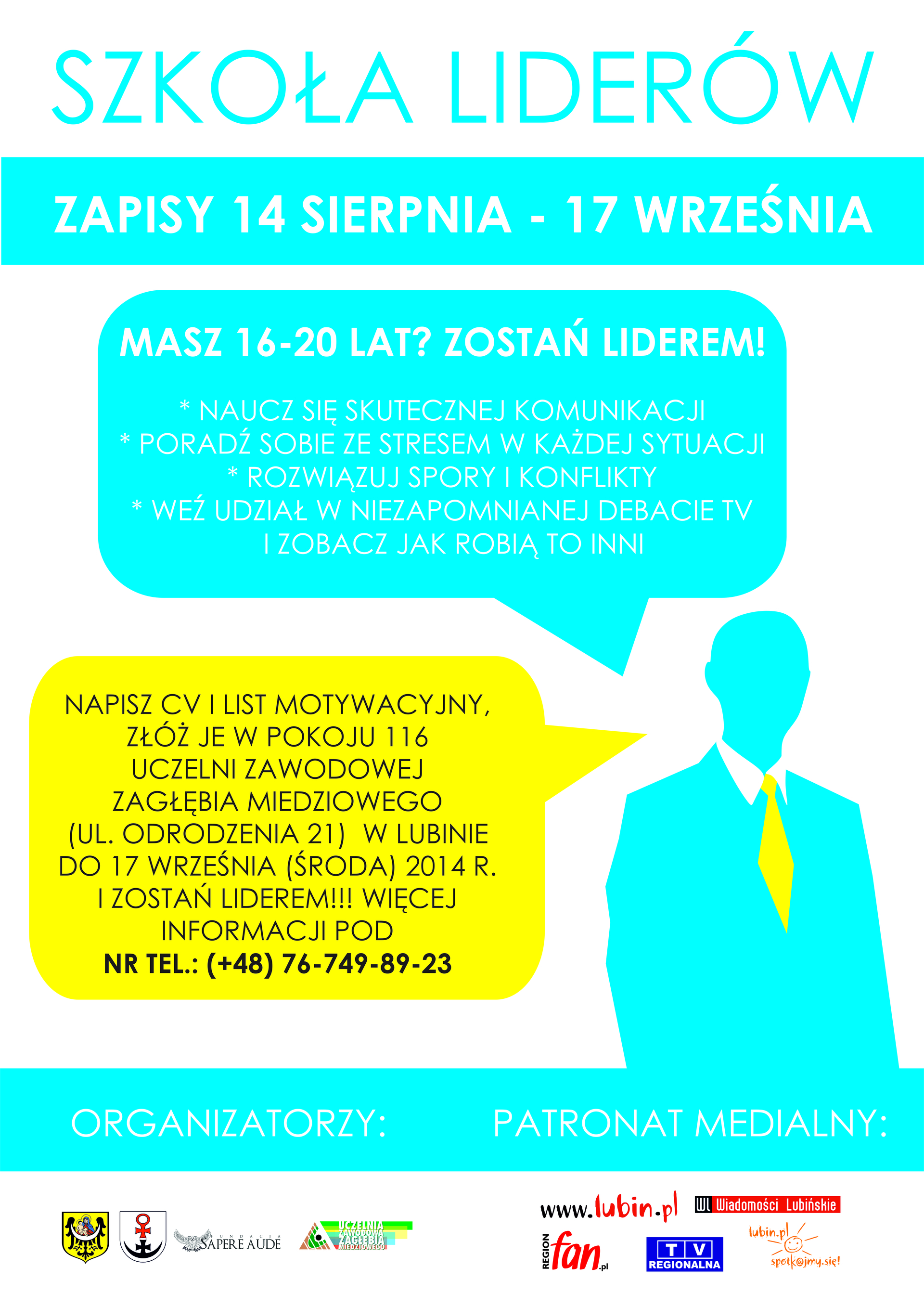 Są jeszcze wolne miejsca do Szkoły Liderów, której zajęcia już po raz kolejny będą odbywać się w Lubinie. Zajęcia ruszą na przełomie września i października rekrutacja potrwa do poniedziałku 22 września.