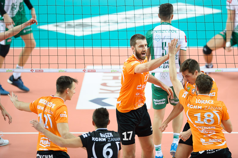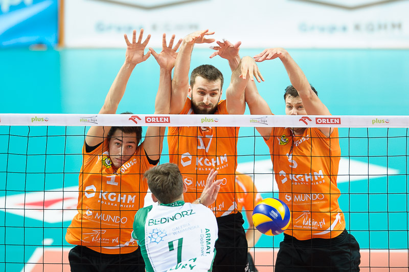 Cuprum: Malinowski, Pupart, Boehme, Włodarczyk, Możdzonek, Łomacz, Rusek (libero) oraz Gunia, Romać, Gorzkiewicz.