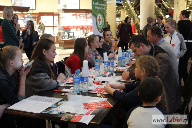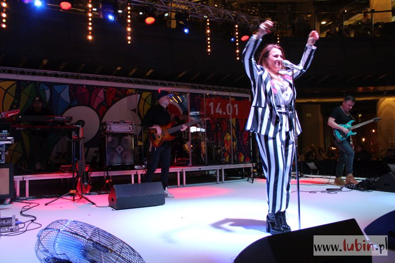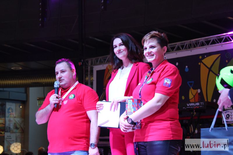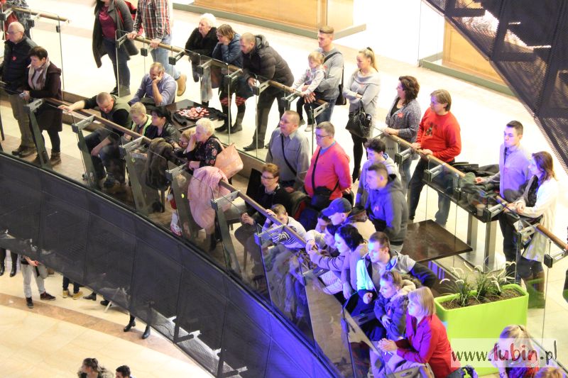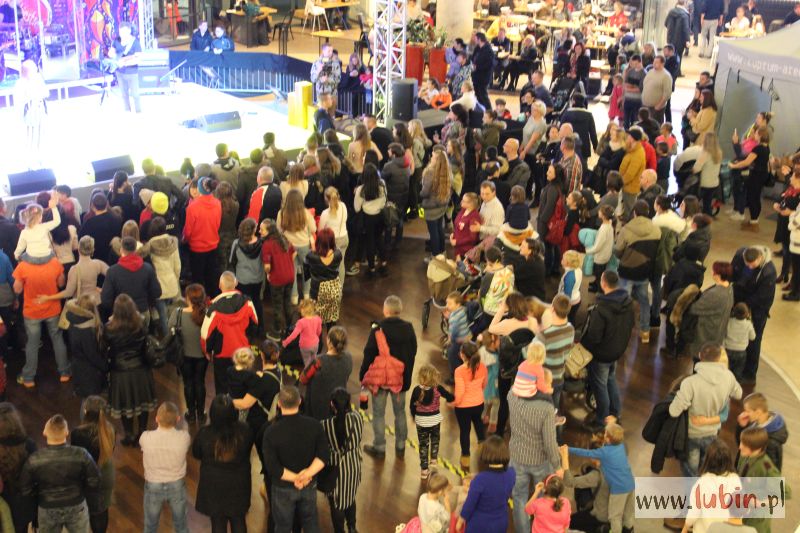 Również Galeria Cuprum w Lubinie od rana tętniła życiem, ale dzisiejsze wizyty nie ograniczały się jedynie do zakupów. Mieszkańcy mogli m.in. odwiedzić punkt Fundacji DKMS i zarejestrować się w bazie dawców szpiku. Tutaj także odbywały się licytacje. Tłumnie zgromadzeni oglądali występy grup tanecznych, clownów oraz długo wyczekiwany koncert lubinianek – Szuli i Kasi Wilk.