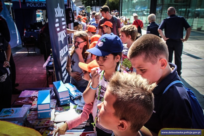 Policjanci z Lubina oraz Polkowic przygotowali stoisko, na którym można było zapoznać się z atrakcjami z danego regionu, dzięki czemu najmłodsi uczestnicy mogli wziąć udział różnych konkursach, grach i zabawach poświęconych bezpieczeństwu.