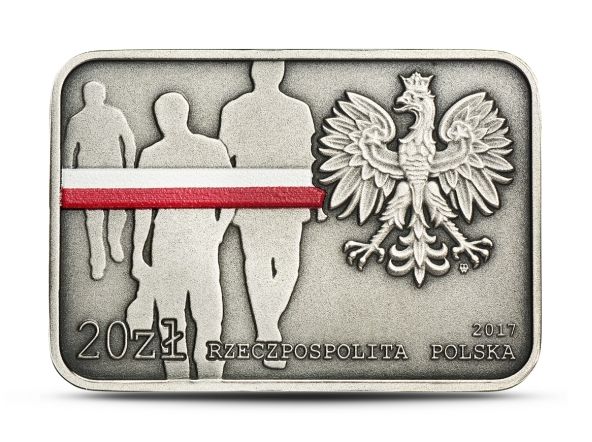 Rewers wydanej dziś monety przedstawia zarysy trzech męskich postaci, ślady po pociskach, szarfę oraz goździki leżące na bruku. Awers to biało-czerwona szarfa na tle sylwetek mężczyzn symbolizujących ofiary Zbrodni Lubińskiej. Całość zaprojektowała Dobrochna Surajewska.