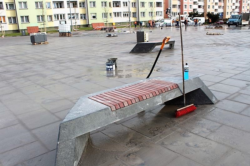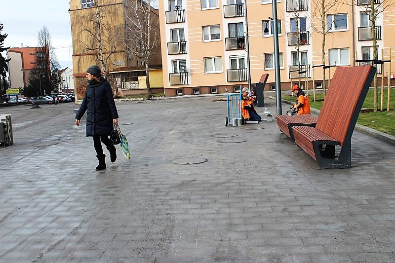 Przez rynek coraz częściej przechadzają się lubinianie. Dziś wielu można też spotkać na ławkach, bo pogoda jest iście wiosenna. – Jak mi się podoba? Jest zima, więc trudno ocenić. Poczekajmy do wiosny, kiedy roślinność się zazieleni, pewnie postawią jakieś donice z kwiatami, włączą fontannę – ocenia jeden z lubinian.