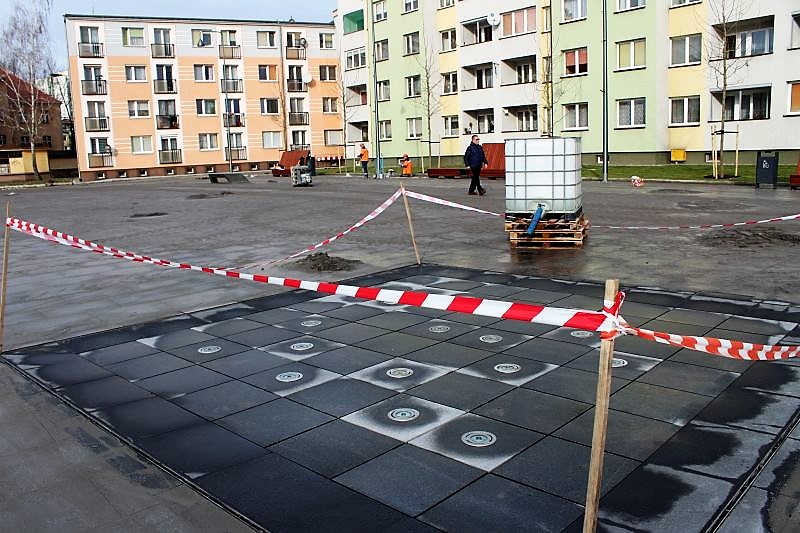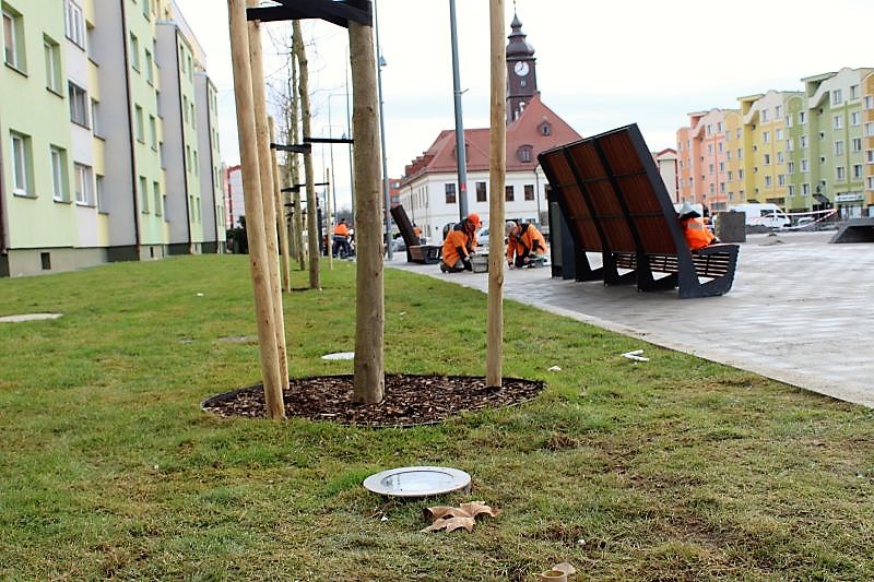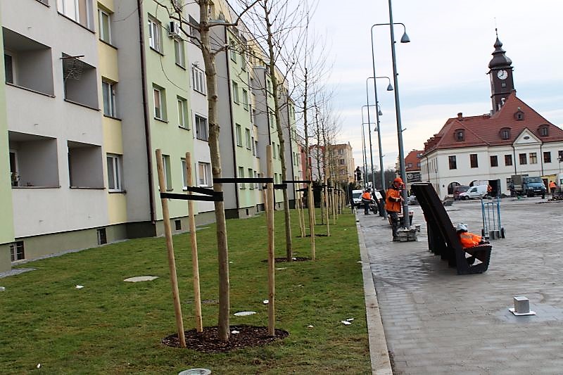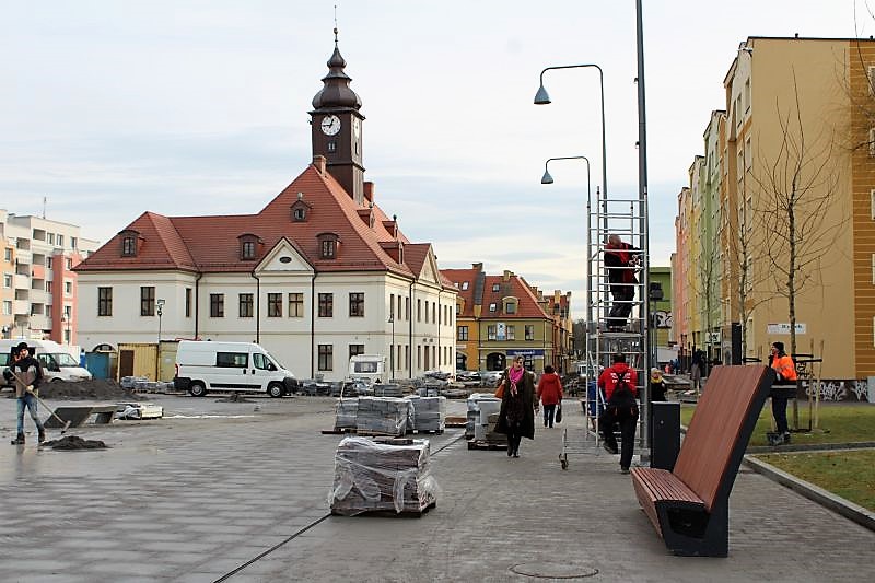 Lubinianie czekali kilkanaście lat aż z rynku zniknie dziura. Inwestycja właśnie jest na finiszu. Teren został wyłożony kamieniem, na którym odwzorowano kontury starych kamienic, pojawiły się ławki, nowe oświetlenie, fontanna, zasadzono około trzydziestu drzew. Teraz robotnicy zamiatają plac budowy, montują ostatnie tabliczki informacyjne, zbierają swój sprzęt.