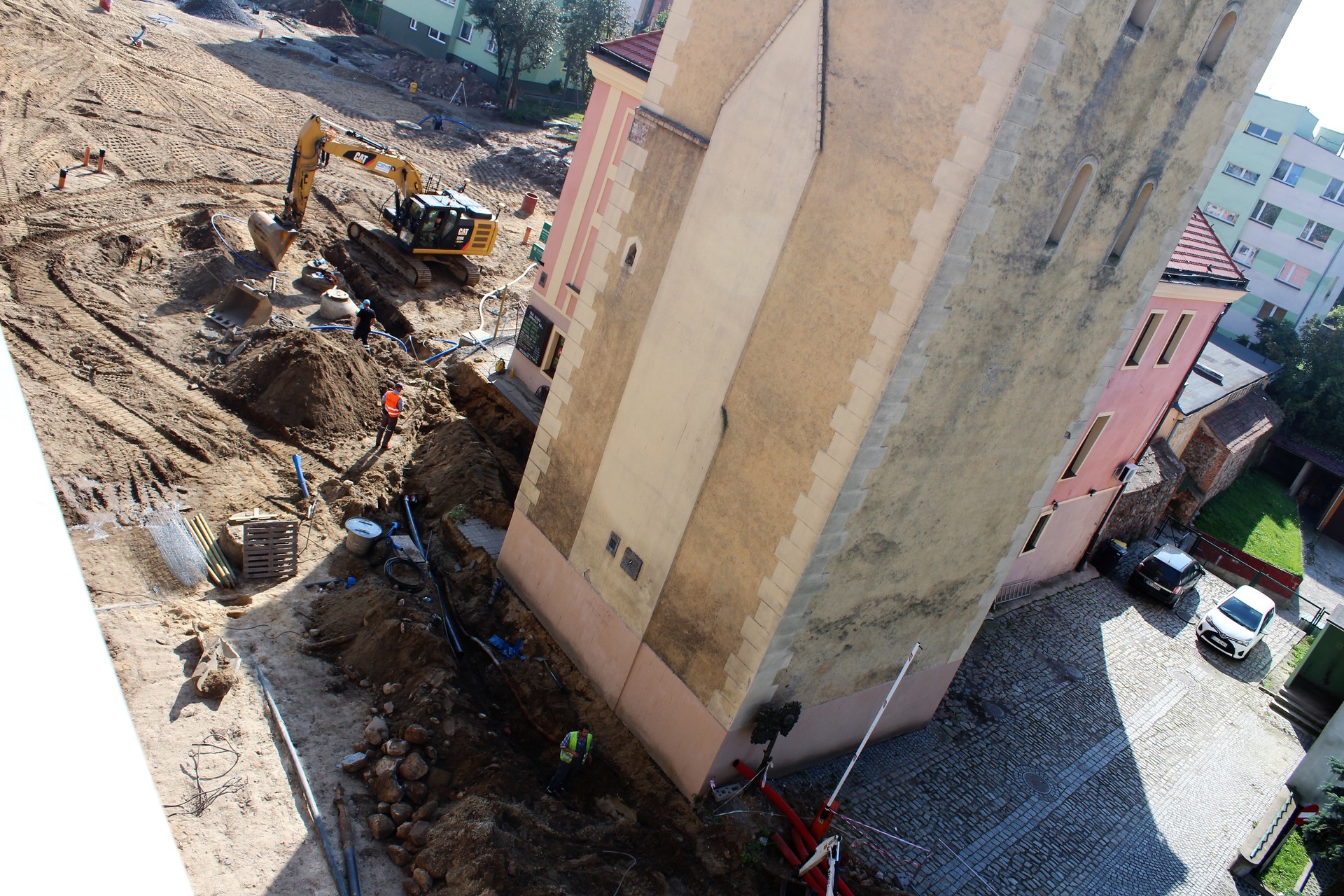 Jak nam powiedzieli pracujący na miejscu budowlańcy, utrudnienia potrwają najpóźniej do jutrzejszego popołudnia. – W sobotę rano przejście będzie już takie samo jak wcześniej, zostanie wydzielony wąski chodnik wzdłuż baszty. Dziś awaryjnie musieliśmy wyłączyć to miejsce z ruchu, ponieważ poprzedni wykonawca nie wymienił tutaj sieci. Trzeba je przepiąć, a w niektórych miejscach położyć nowe, których w ogóle nie było – mówi jeden z pracowników.