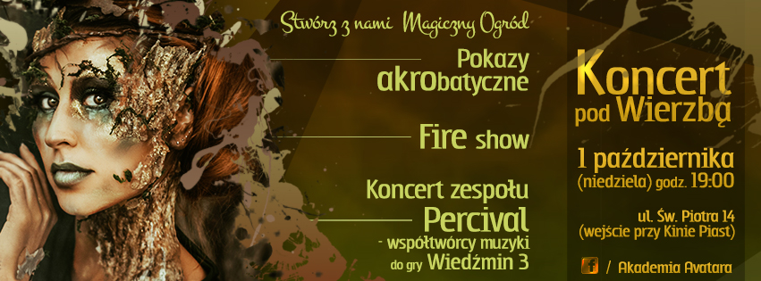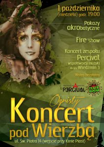 Pierwszego dnia nowego miesiąca, w sielankową październikową niedzielę, Akademia Avatara uczyni z legnickiej Starej Wierzby prawdziwą Gwiazdę Wieczoru! Jej dostojny, mocarny pień otoczony zostanie magnetyczną aurą wkomponowanych w zieloną przestrzeń występów. Pod ciężko opadającymi gałęziami na swych instrumentach nastrojowo pobrzękiwać będą muzycy z zespołu Percival.