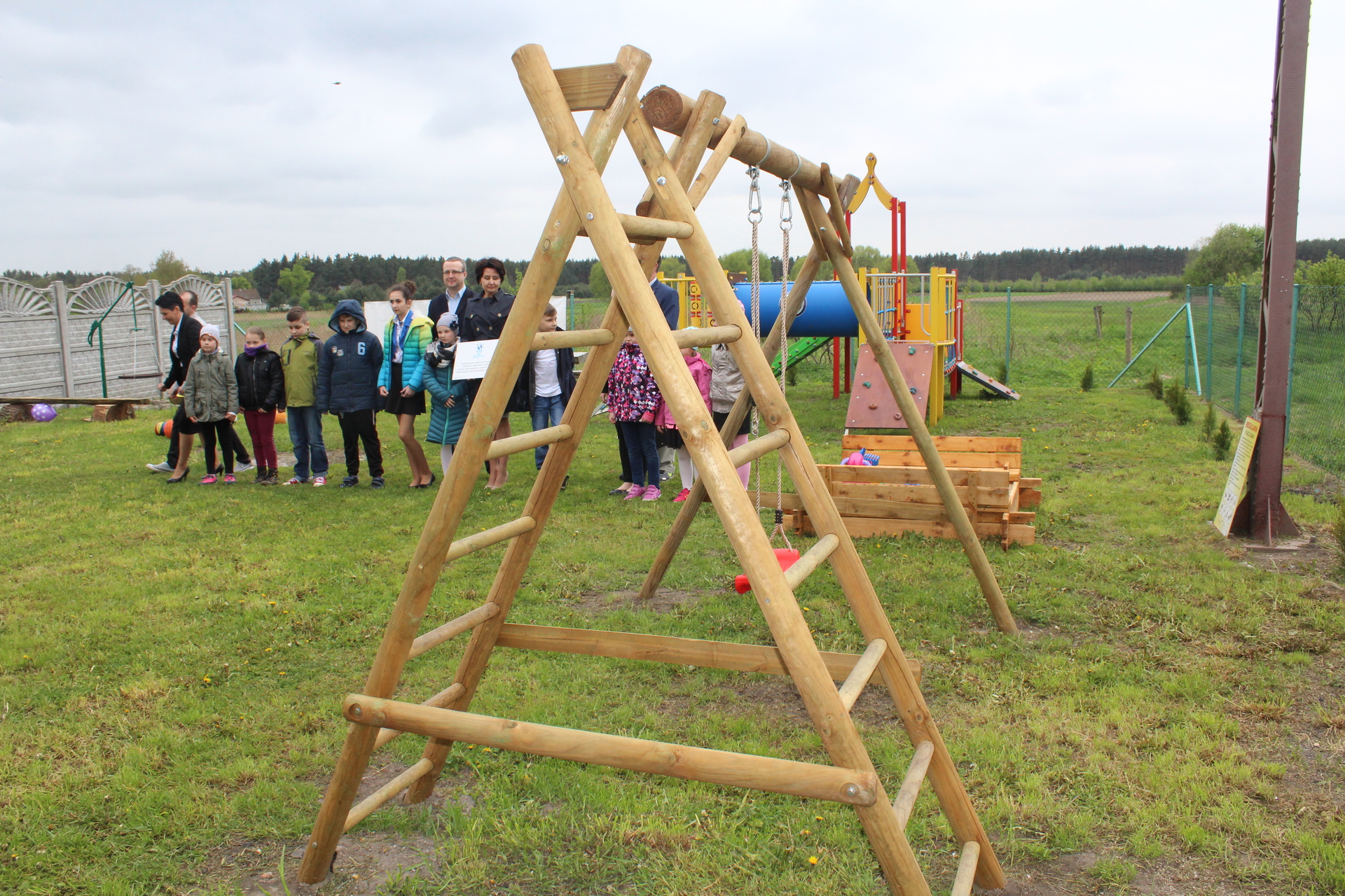 To prezent wolontariuszy z fabryki silników Volkswagen Motor Polska w ramach programu pracowniczego „VWolontariat”. Udział w tym przedsięwzięciu mieli też mieszkańcy wsi, którzy przygotowali teren. Projekt wsparła również gmina.