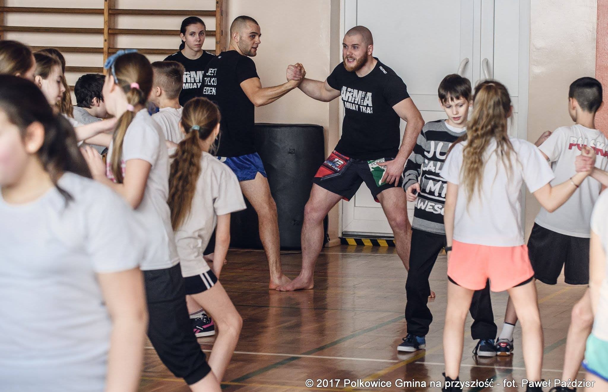 zajęcia_muszyński1„Stop przemocy na ulicach” – kampanię pod tym hasłem rozpoczęli w Polkowicach Bartosz Muszyński, mistrz świata w kickboxingu wraz z Armią Polkowice – z myślą o dzieciach i młodzieży z miejscowych placówek oświatowych. Pierwsze spotkanie zorganizowano z uczniami Szkoły Podstawowej nr 3.