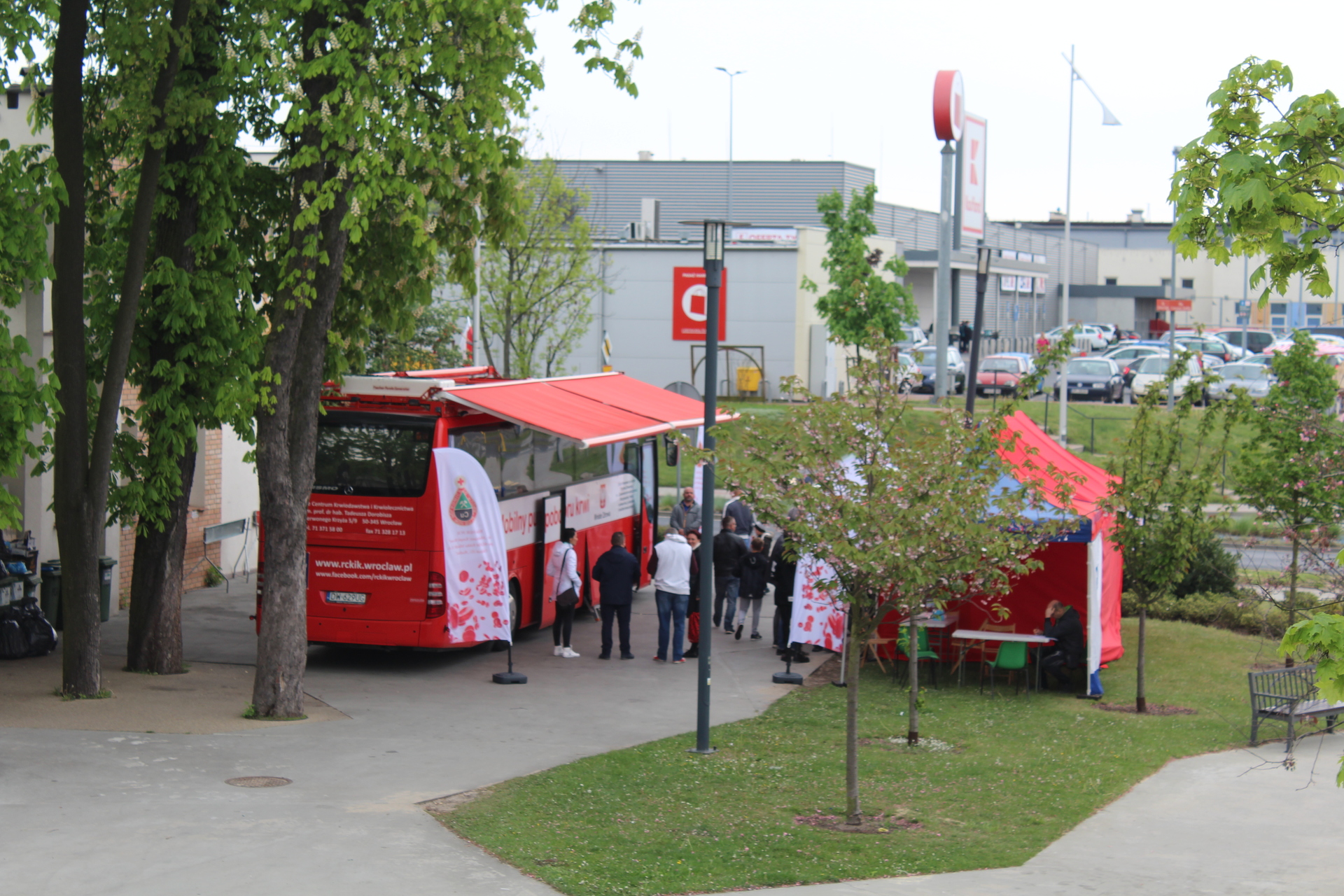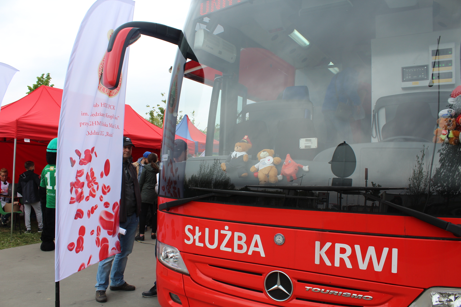 Trwa plenerowa zbiórka krwi zorganizowana w polkowickim parku przez Klub HDK PCK im. „Miedzianej Kropli Krwi” przy ZG Rudna i Stowarzyszenie HDK i HDSzK.