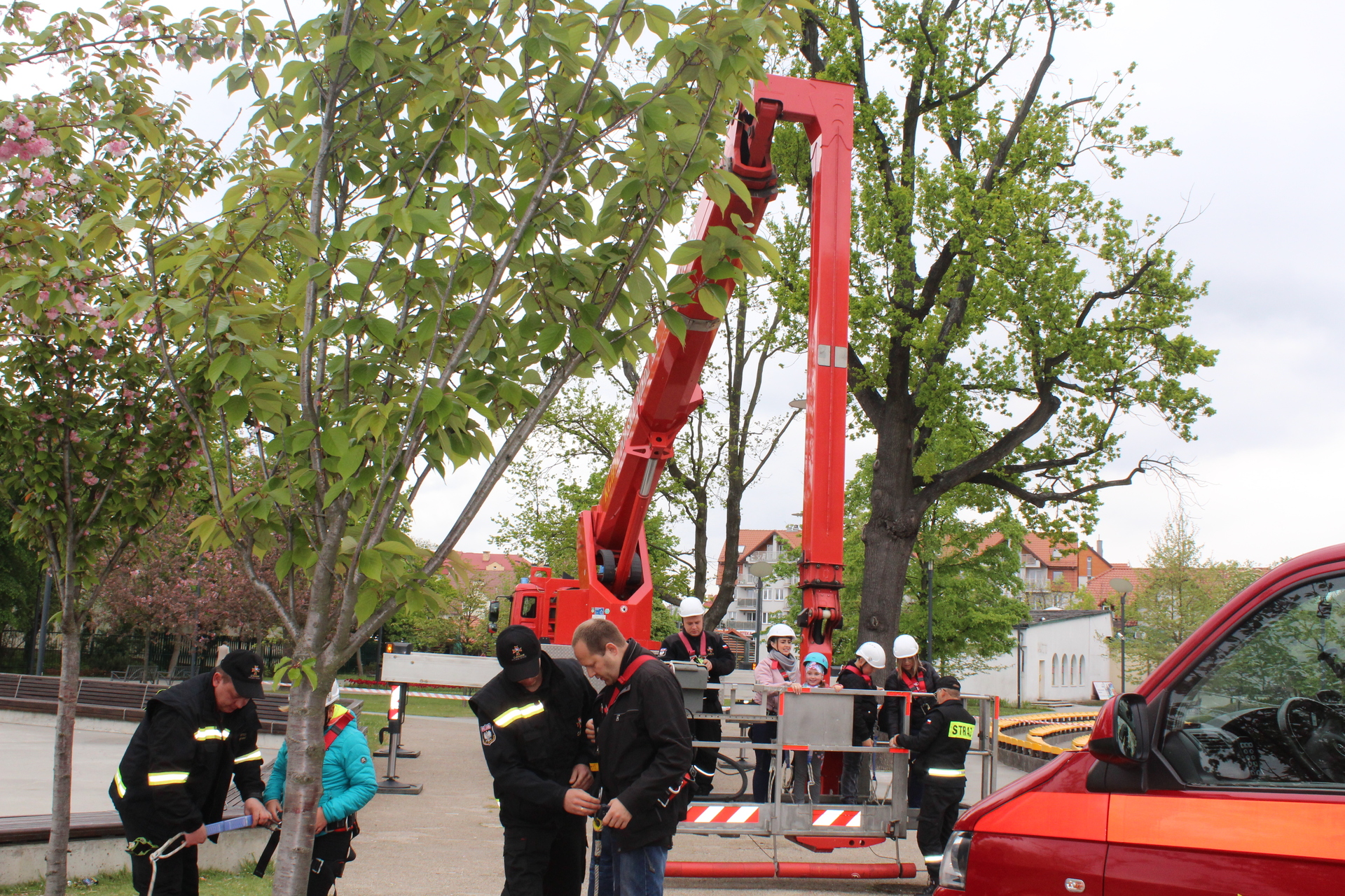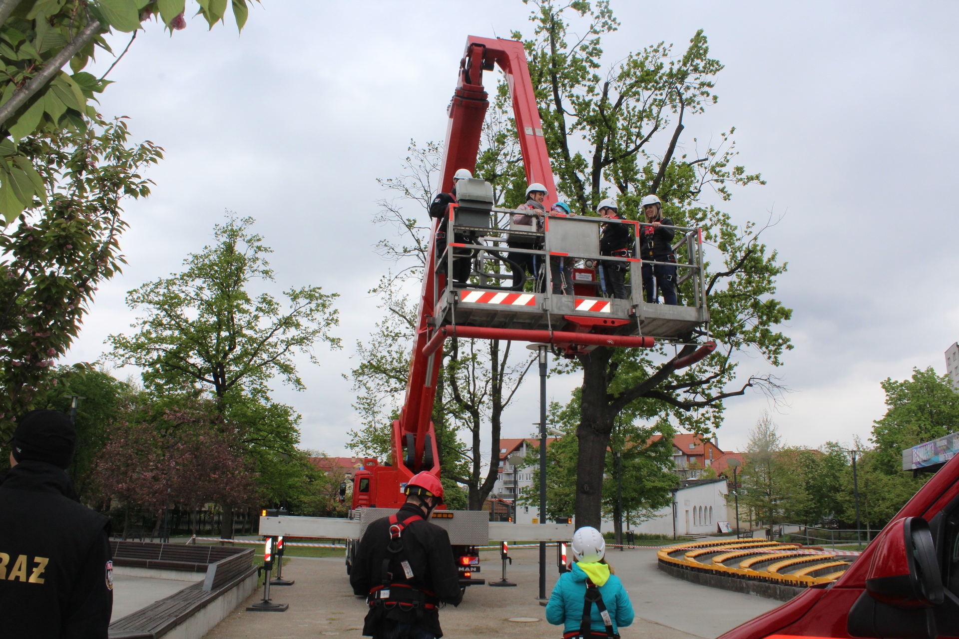 Podczas dzisiejszej zbiórki atrakcję przygotował głogowski wydział Jednostki Ratownictwa Górniczo-Hutniczego w Lubinie. Z wysokości można obejrzeć wiosenną panoramę Polkowic. Chętnych też nie brakowało.