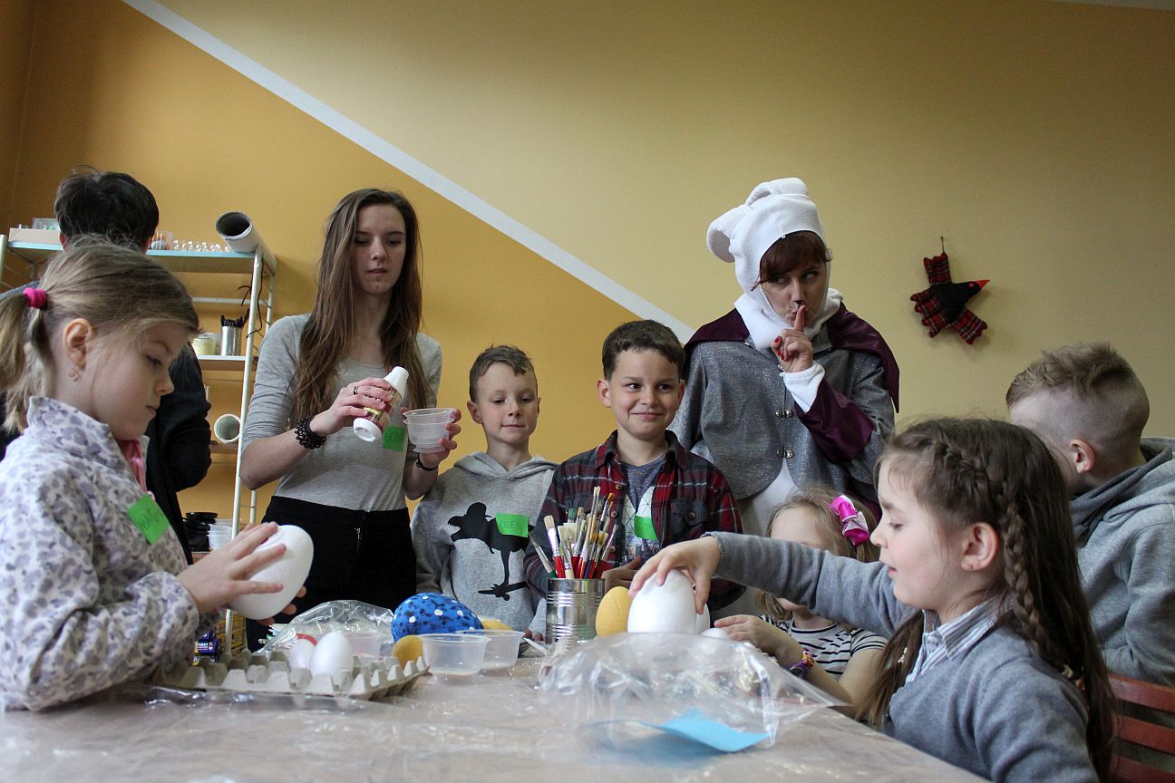 Młodzi legniczanie nie tylko dobrze się bawili, poznali bowiem również techniki tworzenia pisanek: malowanie, oklejanie kawałkami filcu czy papieru, przystrajanie brokatem. Wskazówek udzielała im uznana artystka Jelena Połujanowa.