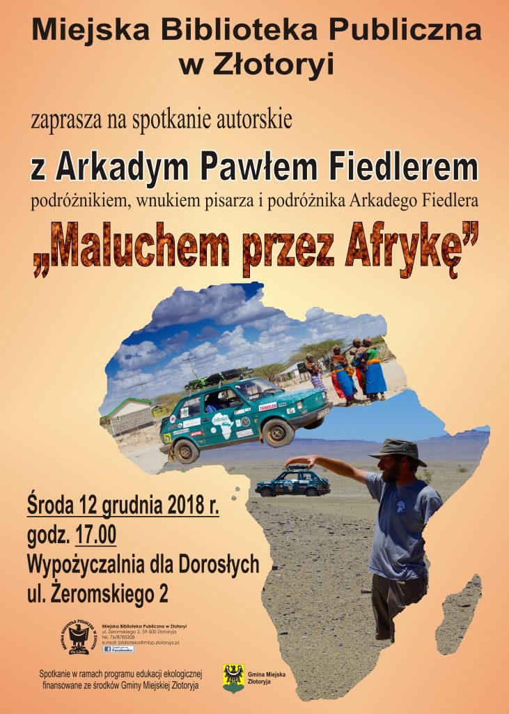 Już w najbliższą środę w Miejskiej Bibliotece Publicznej w Złotoryi odbędzie się spotkanie autorskie z Arkadym Pawłem Fiedlerem, autorem książki „Maluchem przez Afrykę”. Początek spotkania o godz. 17.