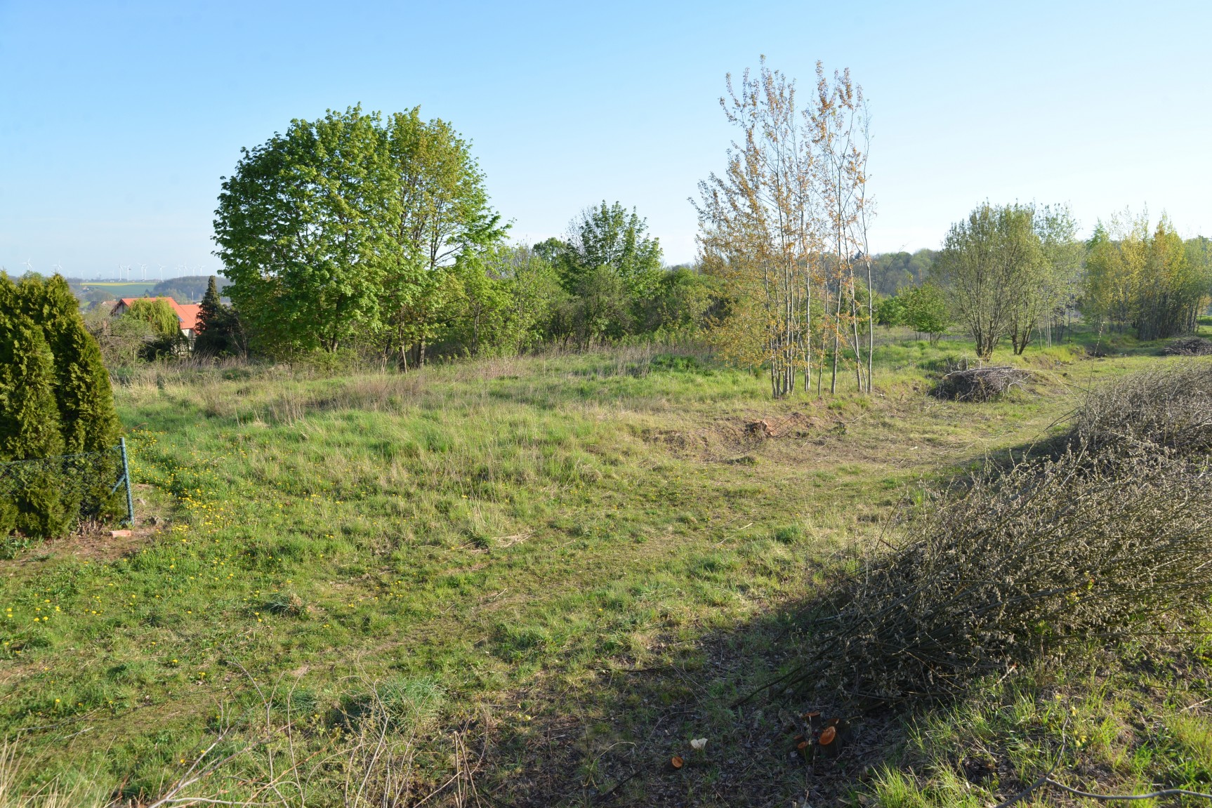 Działka liczy prawie 72 ary. Ma kształt dosyć nieregularny i mocno wydłużony. Jej długość dochodzi do 240 m, a szerokość – do 50 m (w najwęższym miejscu ma ledwie kilkanaście metrów). Teren parceli jest zadrzewiony i zakrzewiony, w miarę płaski, jednak przebiega przez nią rów melioracyjny. Znajdują się na niej również dwa słupy elektroenergetyczne średniego napięcia oraz przebiega nadziemna linia elektroenergetyczna.