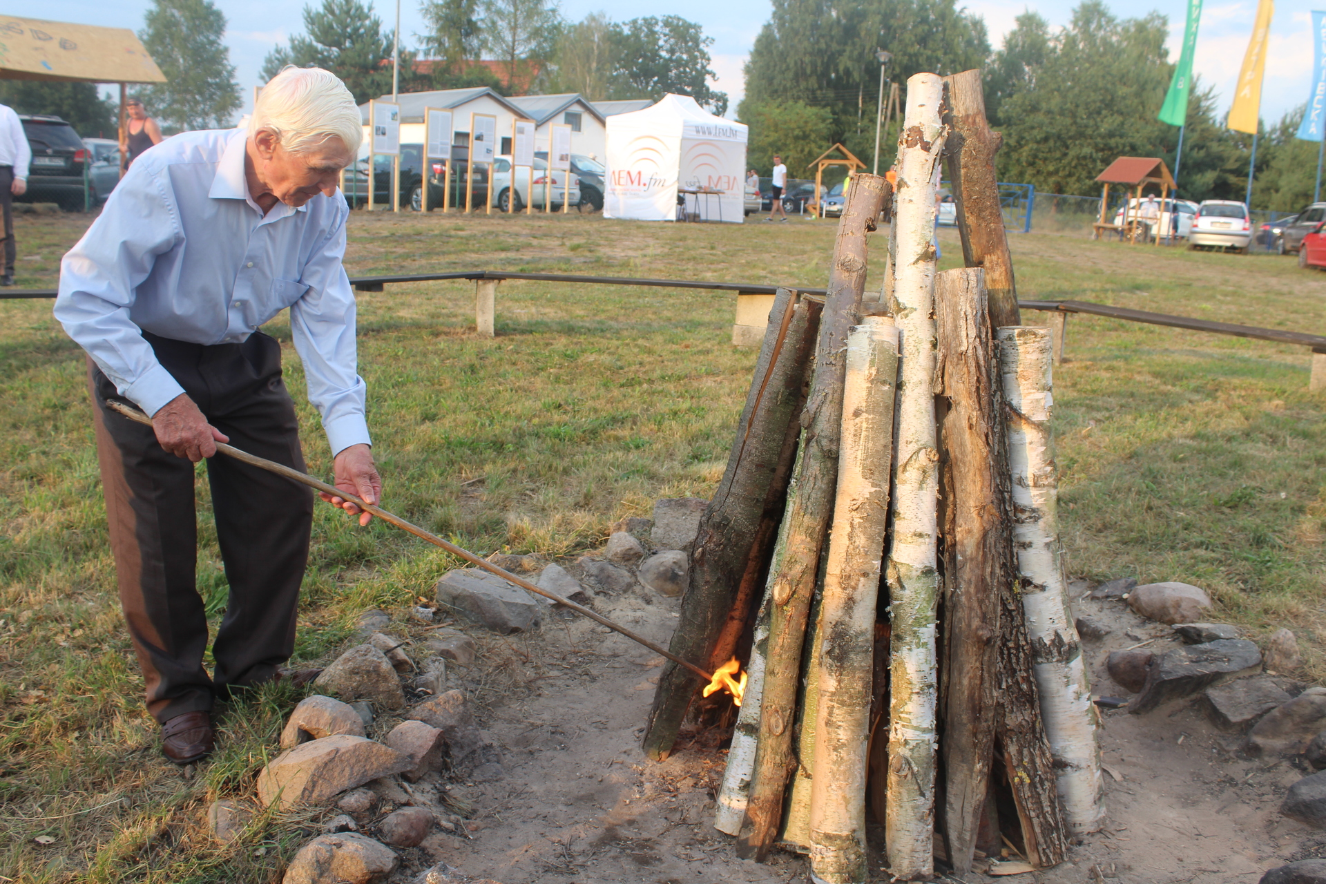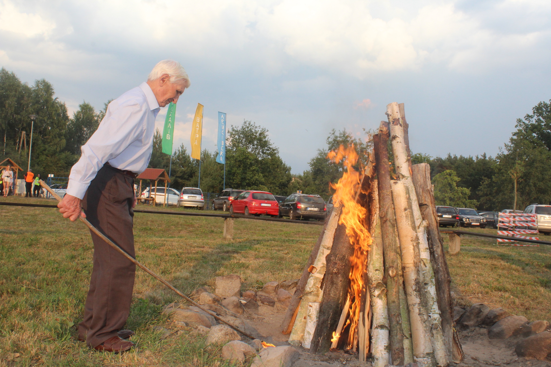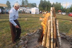 Zgodnie też z tradycją, watrę rozpalił najstarszy mieszkaniec Michałowa 85-letni Jarosław Szlachtycz. Już po raz kolejny. Ogień będzie płonąć do końca imprezy.