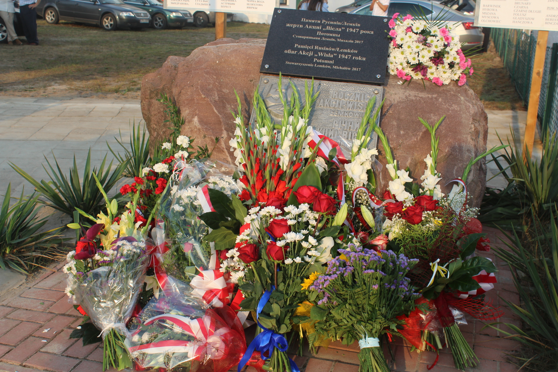 Wcześniej przed tablicą upamiętniającą przesiedlenie Łemków w 1947 roku w czasie akcji “Wisła” złożone zostały kwiaty. Hołd ofiarom tamtych wydarzeń oddali m.in. parlamentarzyści i samorządowcy.