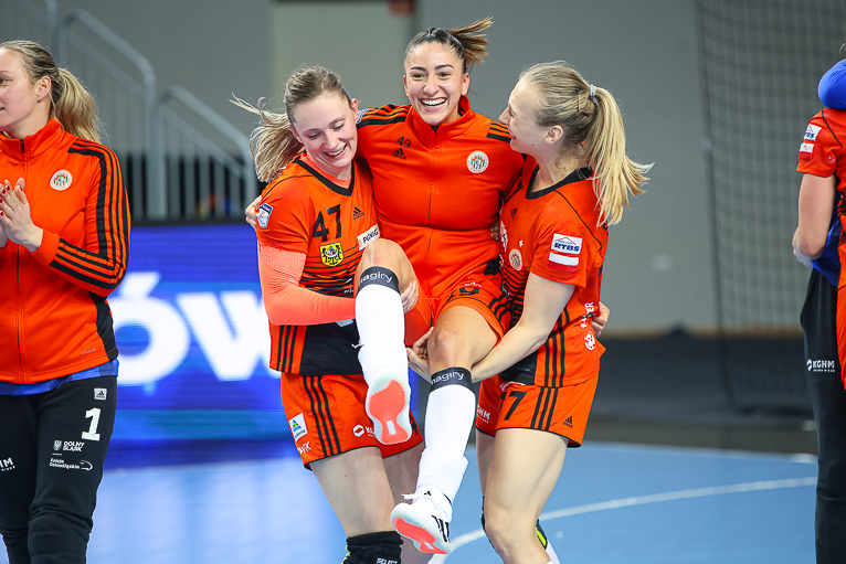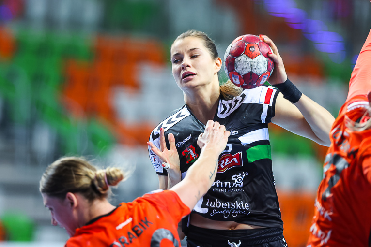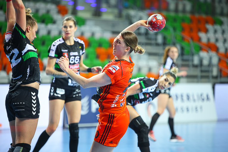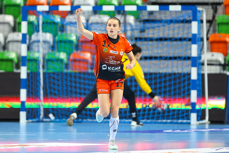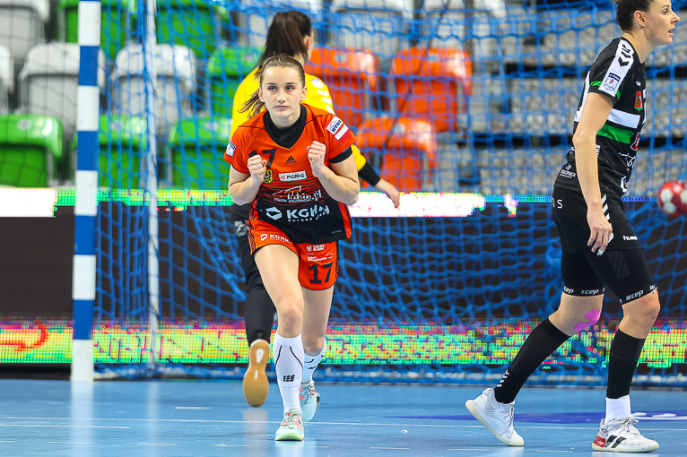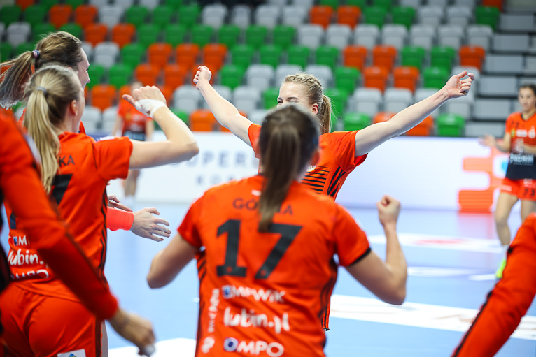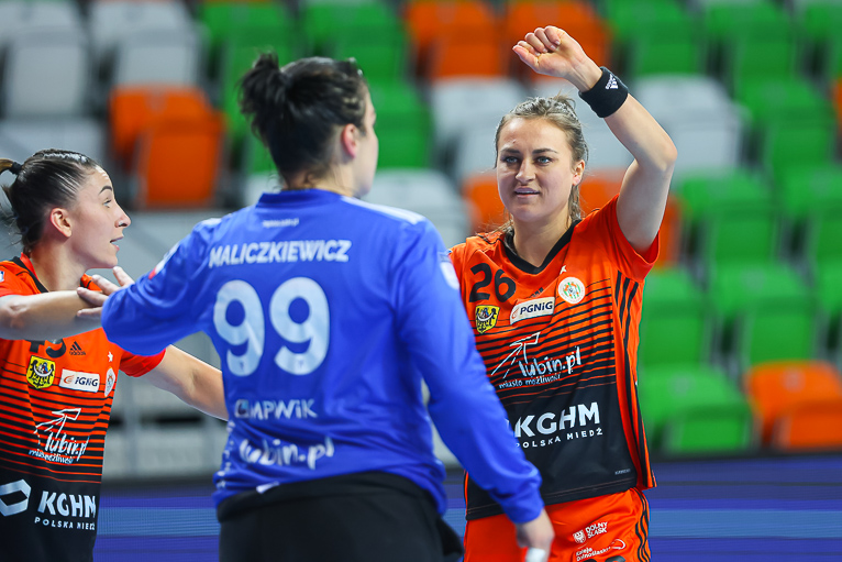 Nie minęło trzydzieści sekund, a już dwie udane interwencje na swoim koncie miała Monika Maliczkiewicz. Chwilę później Miedziowe zdobyły pierwszą bramkę w 2021 roku, za sprawą Joanny Drabik. Dagmara Nocuń zrehabilitowała się za pierwszy, nieudany rzut i wyrównała w drugiej minucie spotkania. Z biegiem czasu Zagłębie zaczęło się rozpędzać i w piątej minucie prowadziło 6:3. Później było jeszcze lepiej, Miedziowe grały koncertowo, piłka chodziła jak po sznurku, głownie za sprawą Patrycji Matieli i Karoliny Kochaniak, współpraca z kołem była wzorowa, a w bramce znakomicie spisywała się Monika Maliczkiewicz, dzięki czemu przed upływem dziesiątej minuty było 8:4 dla miejscowych. Na tym Zagłębie nie poprzestało i z minuty na minutę grało jeszcze lepiej i skuteczniej, a przyjezdnym zaczęło brakować argumentów, rywalki były bezradne na świetnie przygotowane taktycznie lubinianki, które postawiły mur w obronie. W pierwszej połowie dużo lepsze wrażenie zostawiło po sobie Zagłębie, które do szatni schodziło, prowadząc pewnie sześcioma trafieniami.