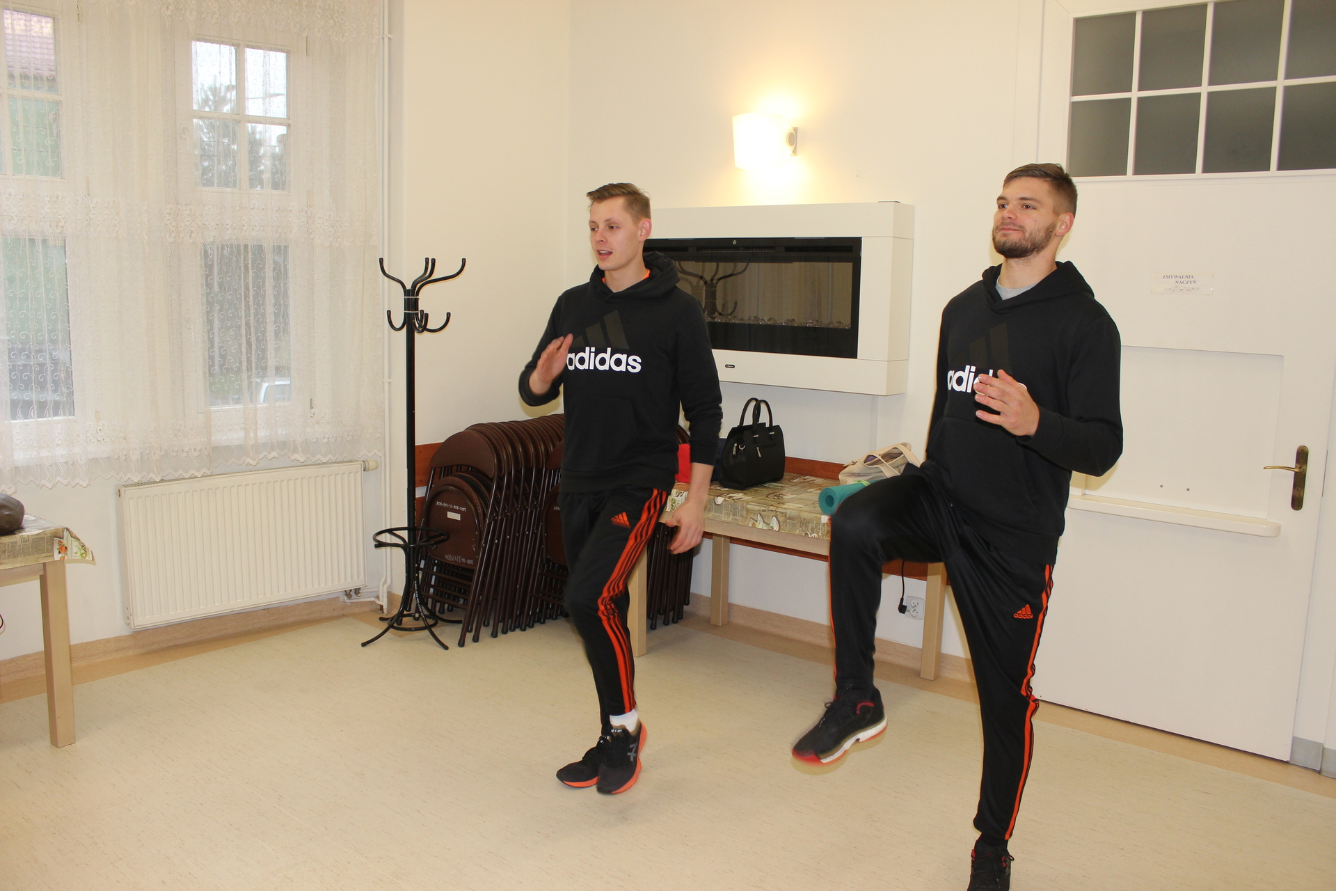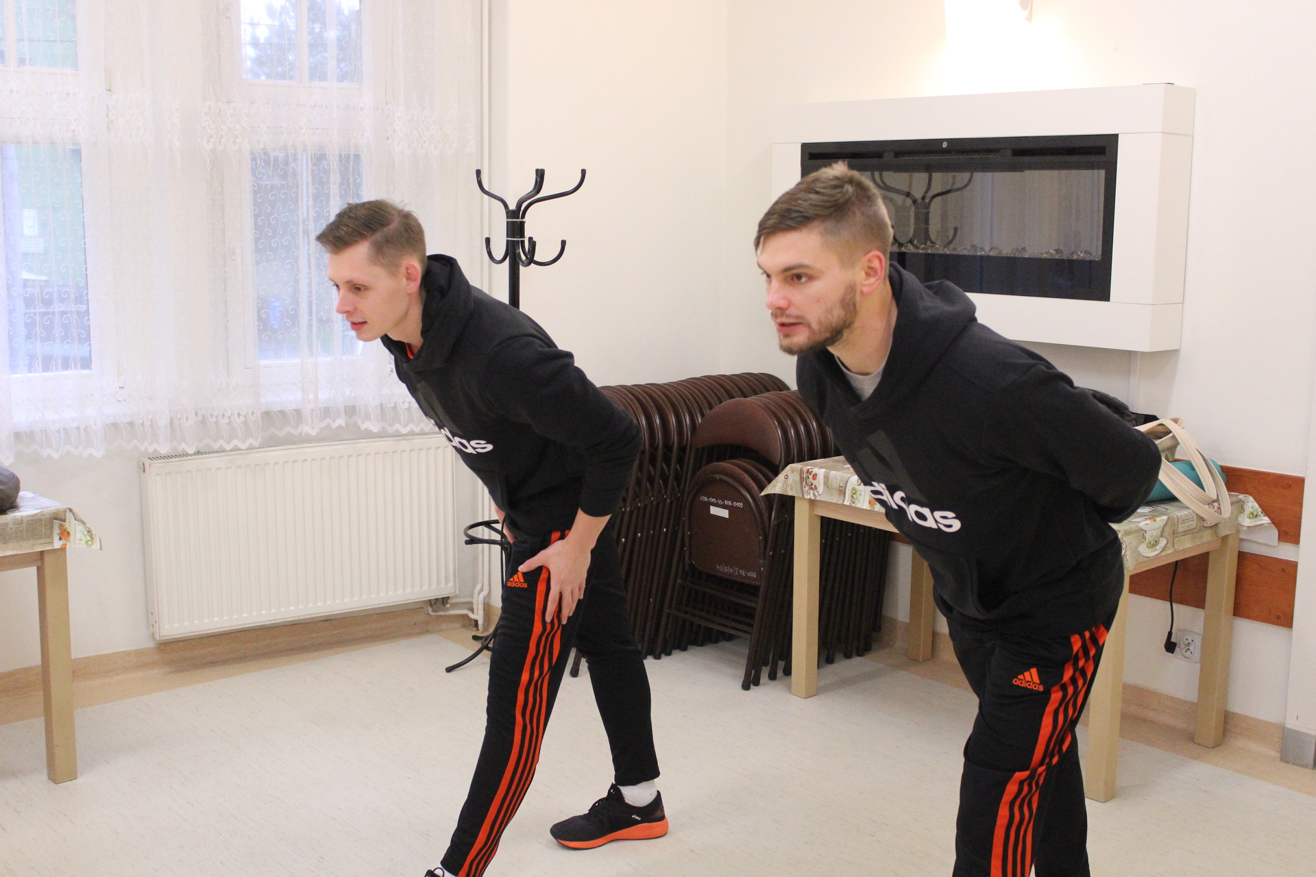 Maciej Tokaj i Roman Chychykalo odwiedzili dziś Dom Dziennego Pobyty Senior w Lubinie. Miedziowi szczypiorniści prowadzili poranną gimnastykę i zapraszali na niedzielny mecz z Azotami Puławy.