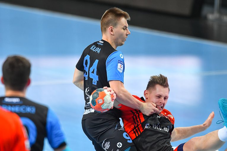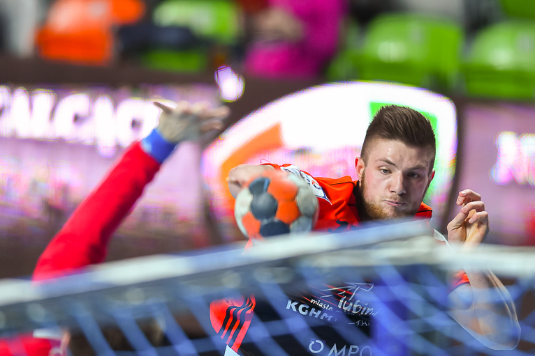 Na atomowy rzut Macieja Tokaja szybko odpowiedzieli Piotr Krępa i Wiktor Jędrzejewski – a to wszystko w niespełna dwie minuty. Szybka wymiana ciosów zwiastowała emocjonujące spotkanie w hali RCS. Miedziowi prowadzenie odzyskali w szóstej minucie, kiedy po silnym rzucie Stanisława Gębali mieliśmy 4:3. Rozgrywający Zagłębia w dziesiątej minucie miał na swoim koncie trzy bramki, a gospodarze wygrywali 5:3. Podopieczni Bartłomieja Jaszki i Jarosława Hipnera złapali wiatr w żagle i zaczęli „odjeżdżać” rywalom. W osiemnastej minucie było 8:5 i o czas poprosił szkoleniowiec gości. Chwilę później było już… 10:5. Lubinianie grali jak natchnieni, akcje napędzał Maciej Tokaj, w bramce po raz kolejny szalał Marcin Schodowski. W końcówce pierwszej połowy byliśmy świadkami gry bramka za bramkę i do przerwy było 14:10.