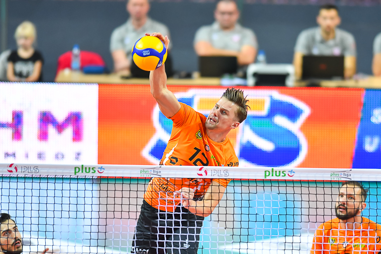 Bartłomiej Lipiński w ataku (Fot. Paweł Andrachiewicz)Mecz na inaugurację PlusLigi zastał Cuprum Lubin we własnej hali. – Nie możemy się wprost doczekać – podkreślali kibice „Miedziowych”. Nadzieje były spore zwłaszcza, że okres przygotowawczy zespół Marcelo Fronckowiaka przepracował naprawdę solidnie.