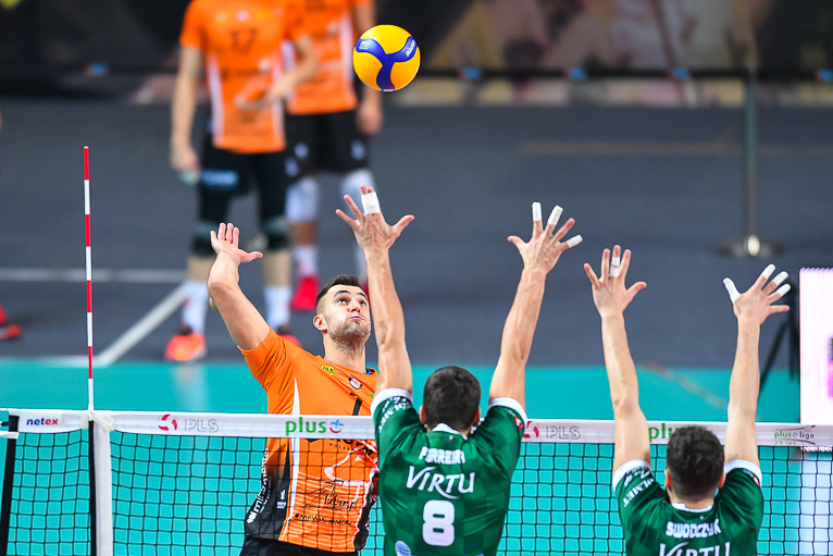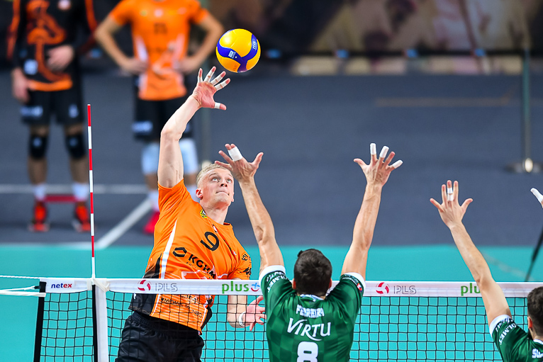 Gospodarze wyszli szóstką: Jędrzej Gruszczyński (Libero), Dvoranen Robinson (przyjmujący), Bartłomiej Lipiński (przyjmujący), Miguel Tavares (rozgrywający), Jakub Ziobrowski (atakujący) i Przemysław Smoliński (środkowy).