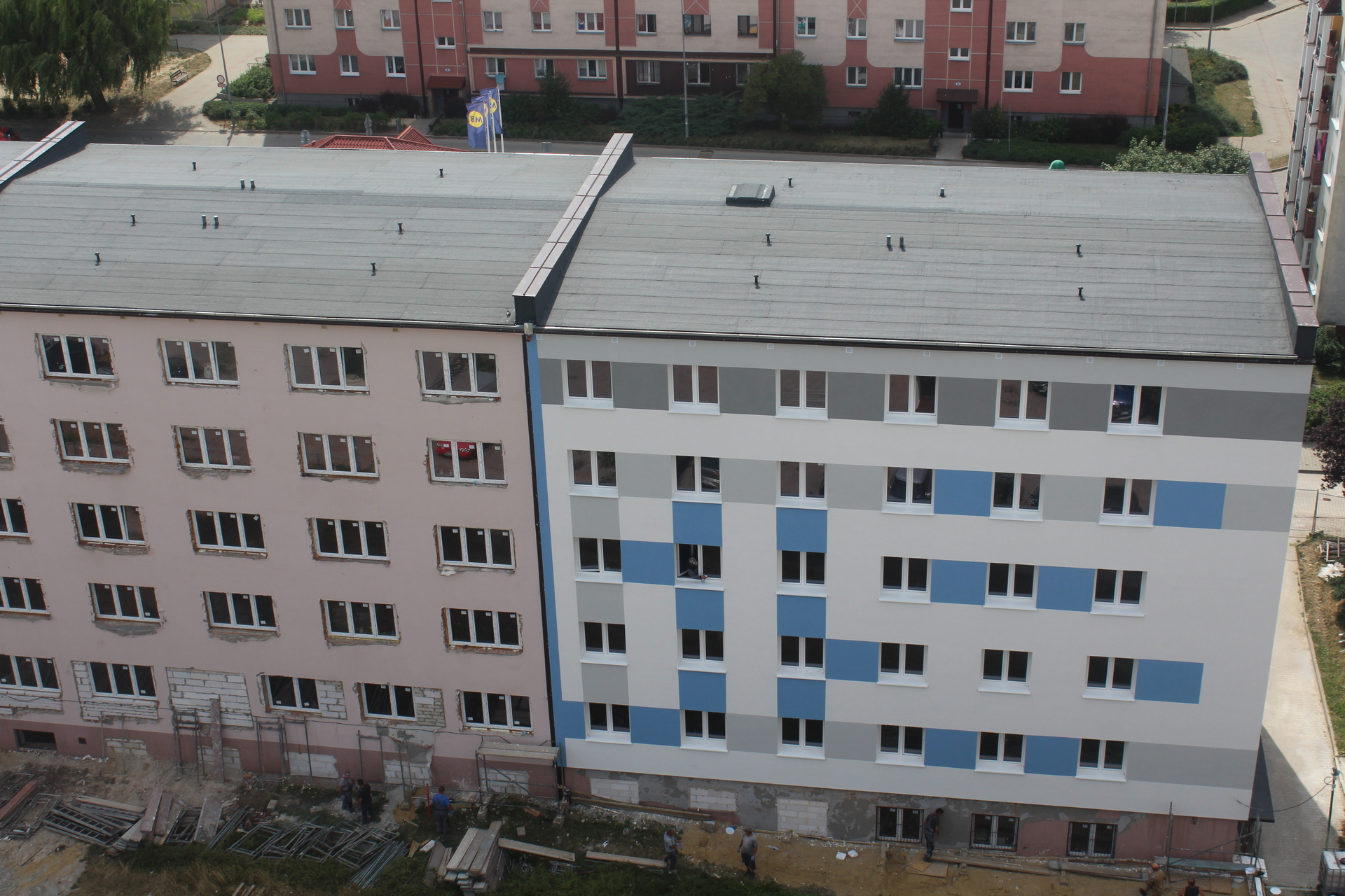 Mieszkańcy obserwują remont polkowickiego bloku