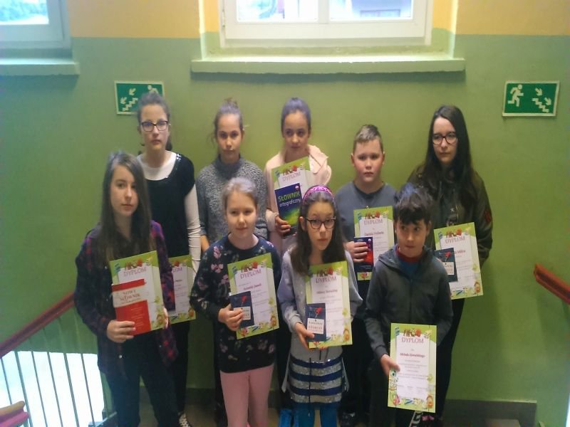 Do finałowych potyczek ortograficznych zakwalifikowało się dwanaścioro z nich. Tytuł „Mistrz w posługiwaniu się słownikiem ortograficznym – znawca ortografii” otrzymali: Izabela Burza z kl. IV i Michał Zawadzki z kl. III. Drugie miejsca zajęli: Karolina Pieńko z kl. IV, Maja Włodarska z kl. VI i Daniel Nolbert z kl. III, a trzecie – Amelia Jasek z kl. IV i Zuzanna Preisner z kl. VI, która została jeszcze wyróżniona za umiejętność biegłego wyszukiwania wyrazów w słowniku ortograficznym.