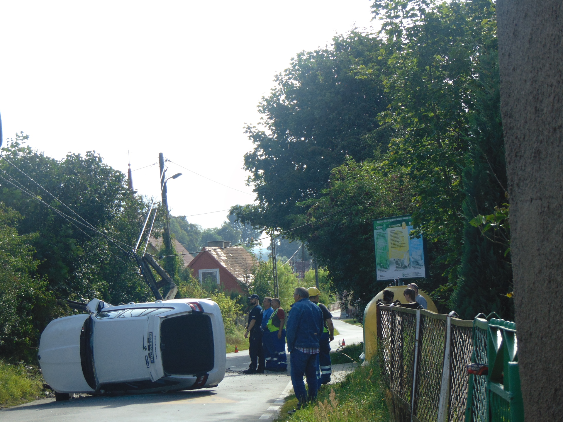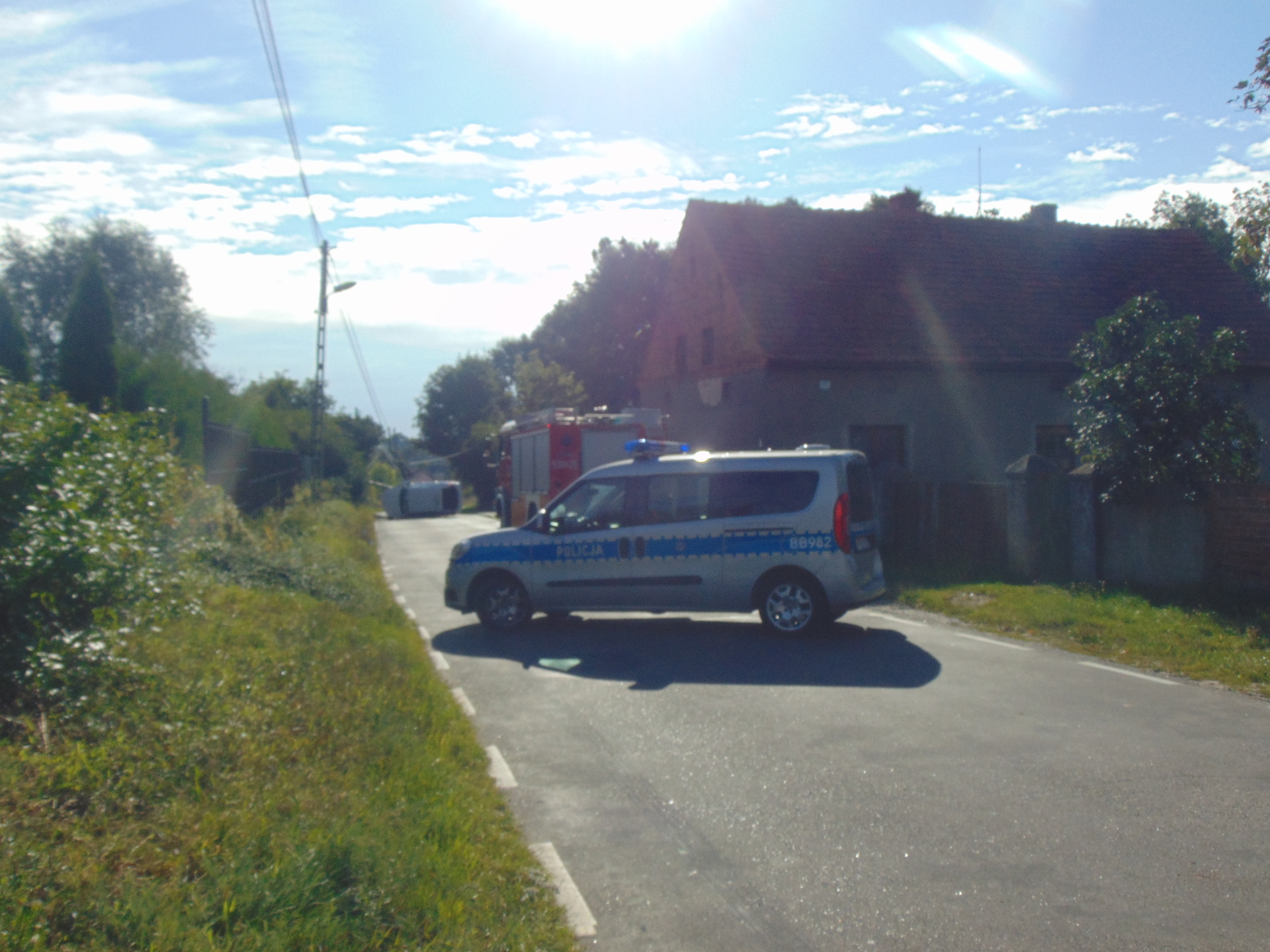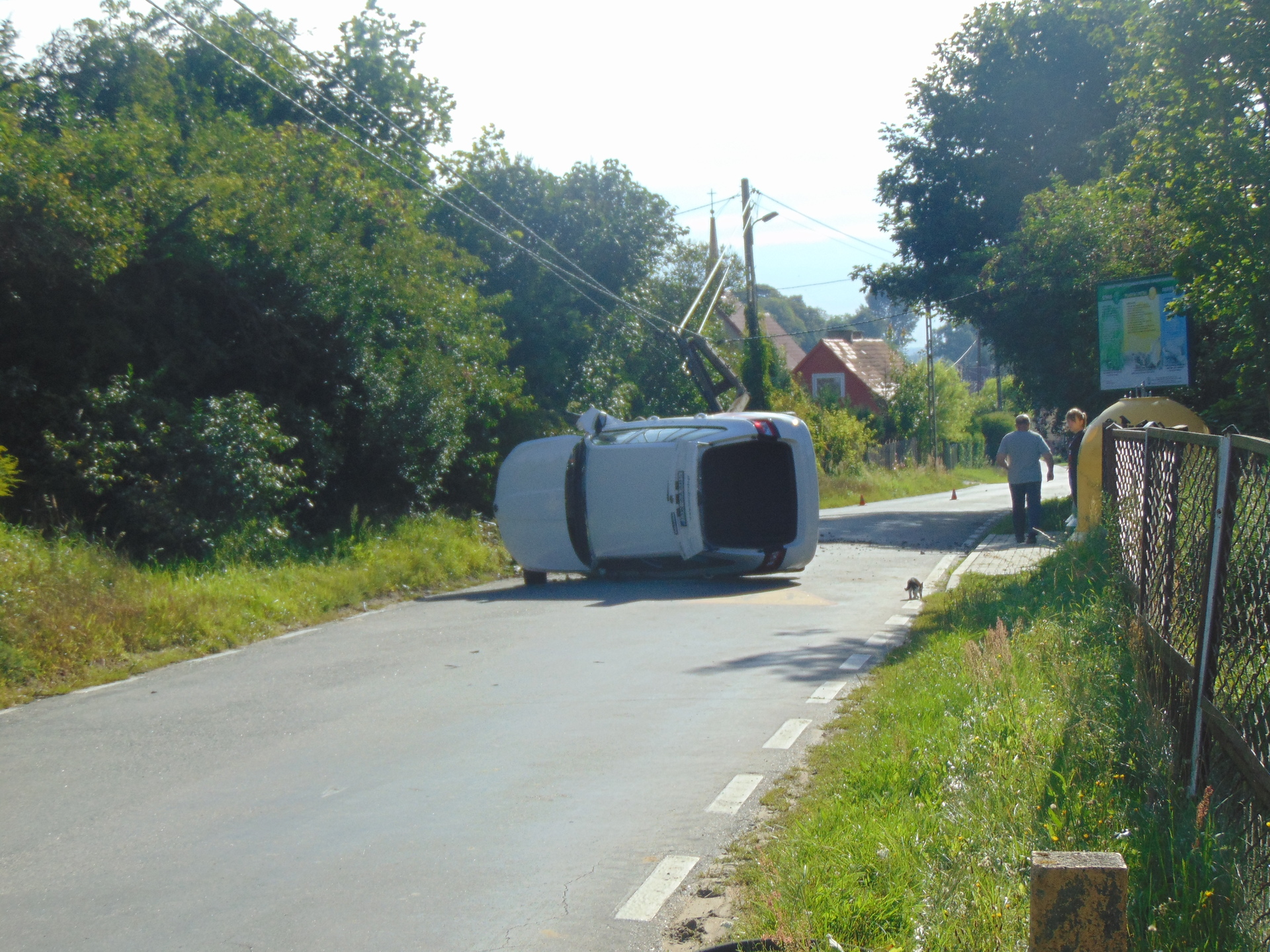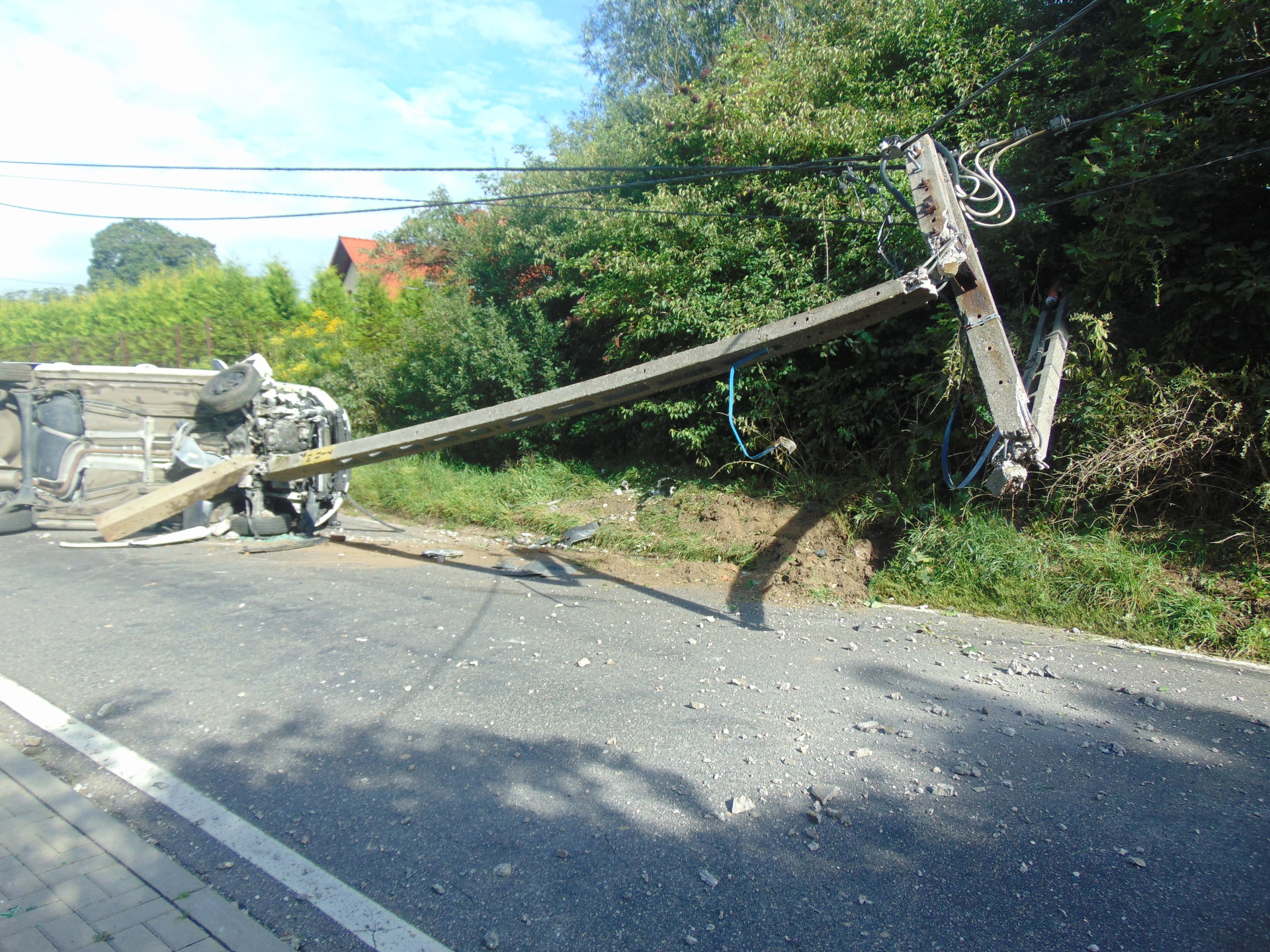 – Na miejscu zastaliśmy przewrócony słup energetyczny na jezdni – mówi Tomasz Lewandowski, dowódca jednostki ratowniczo-gaśniczej PSP w Polkowicach. Samochód marki Skoda Fabia także został przewrócony – dodaje.