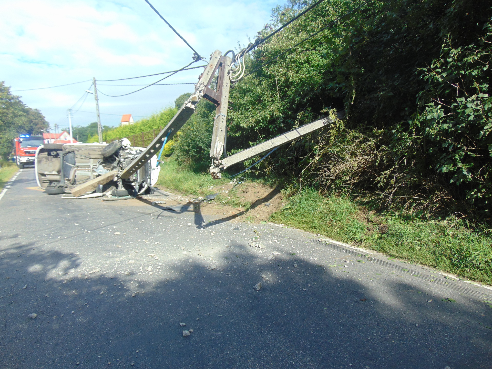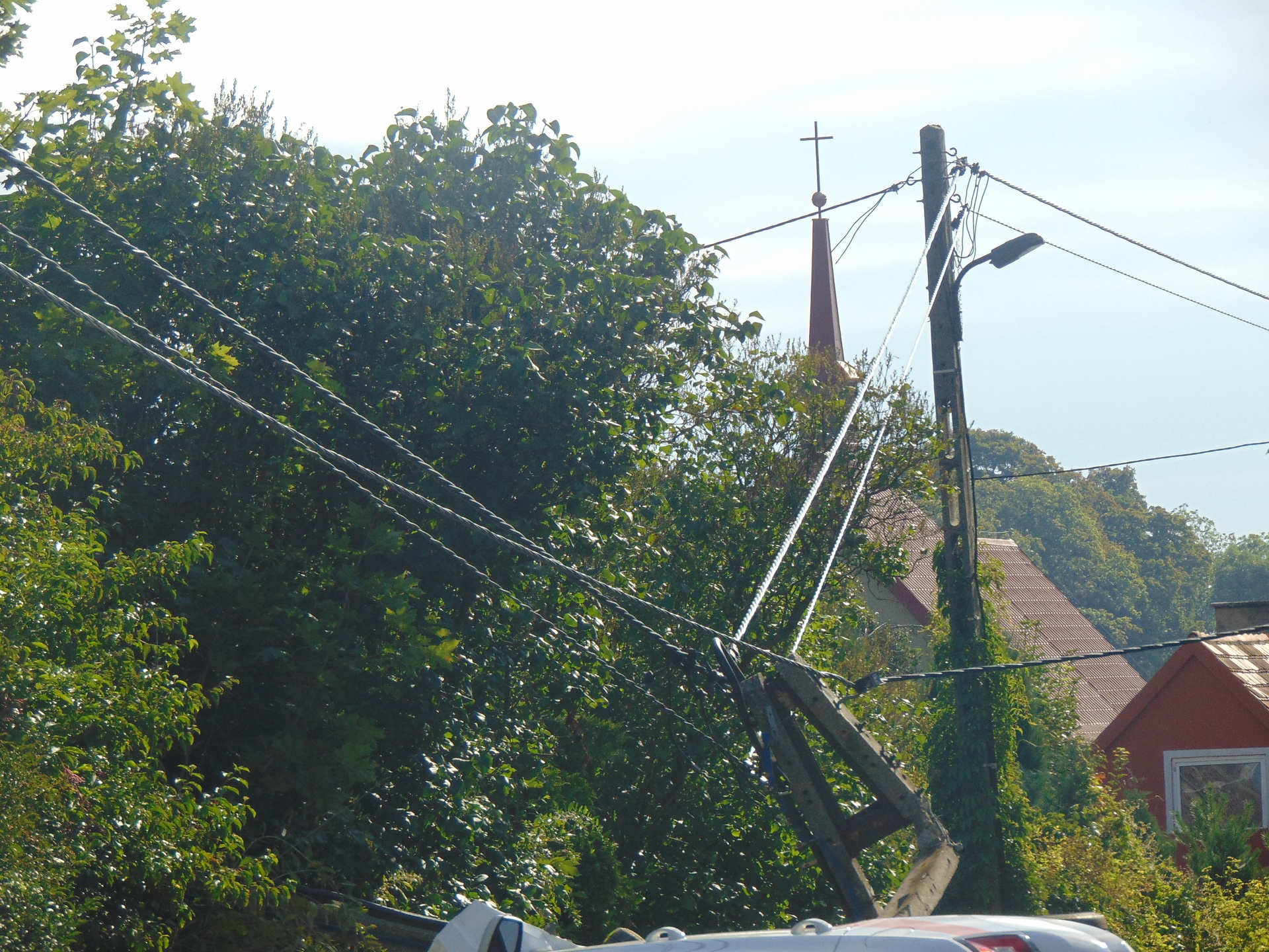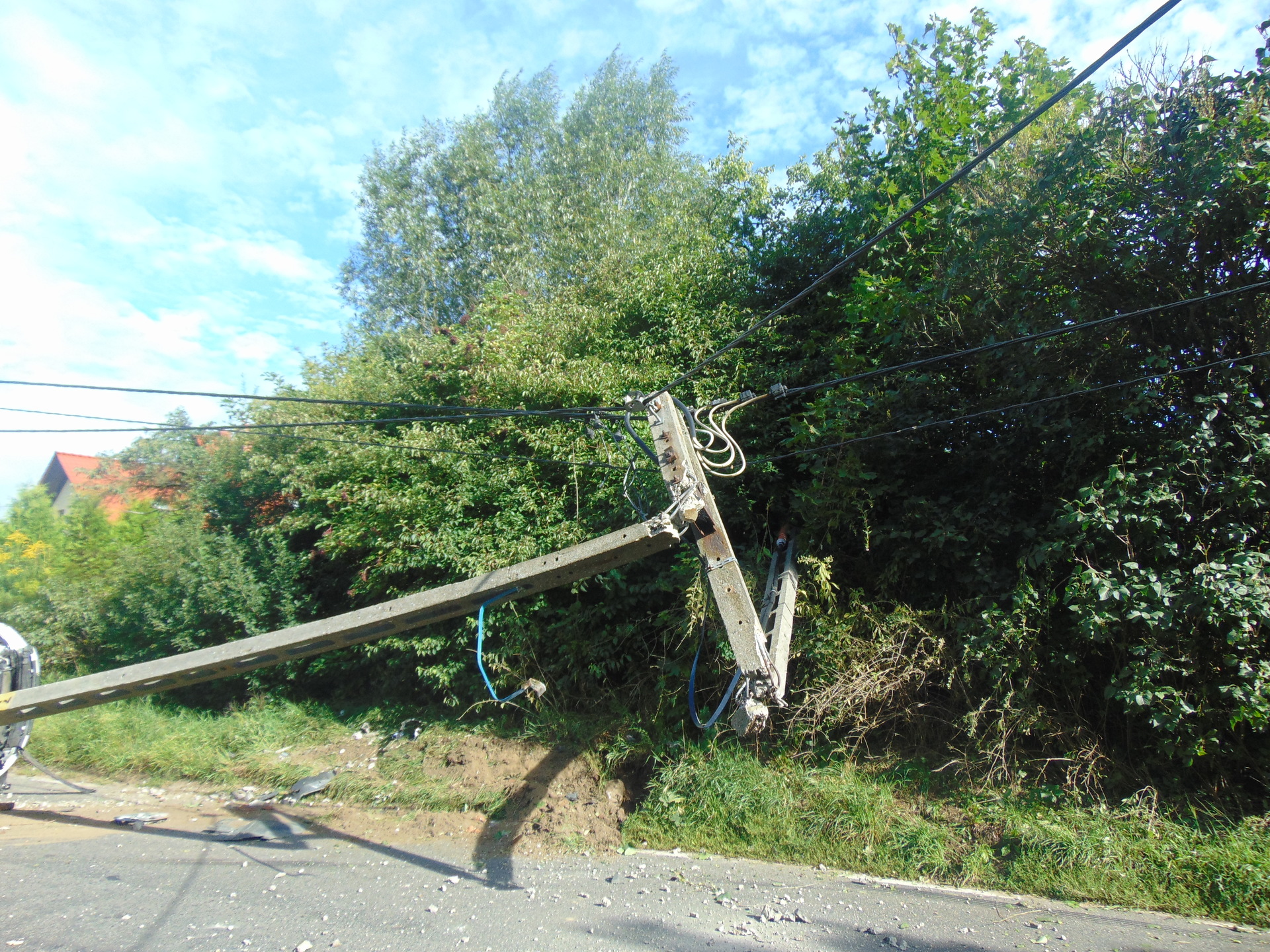 GMINA POLKOWICE. Staranowała słup energetyczny (FOTO, WIDEO)