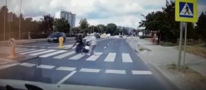 Na ten widok cierpnie skóra – motocyklista na przejściu dla pieszych potrąca wózek, w którym znajduje się czteromiesięczna dziewczynka i… jak gdyby nigdy nic odjeżdża. Zdarzenie to uchwyciła kamerka samochodowa. Policjanci już dotarli do kierowcy jednośladu.