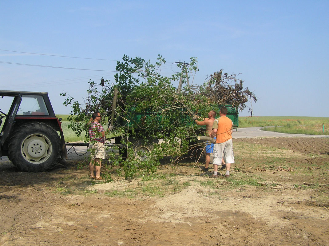 Trwa oczyszczanie terenu przeznaczonego pod skwer. Wywożone są suche gałęzie i kamienie, a cały teren jest wyrównywany.