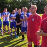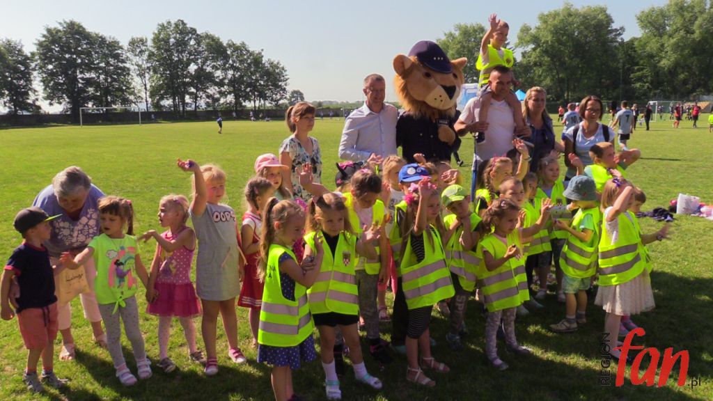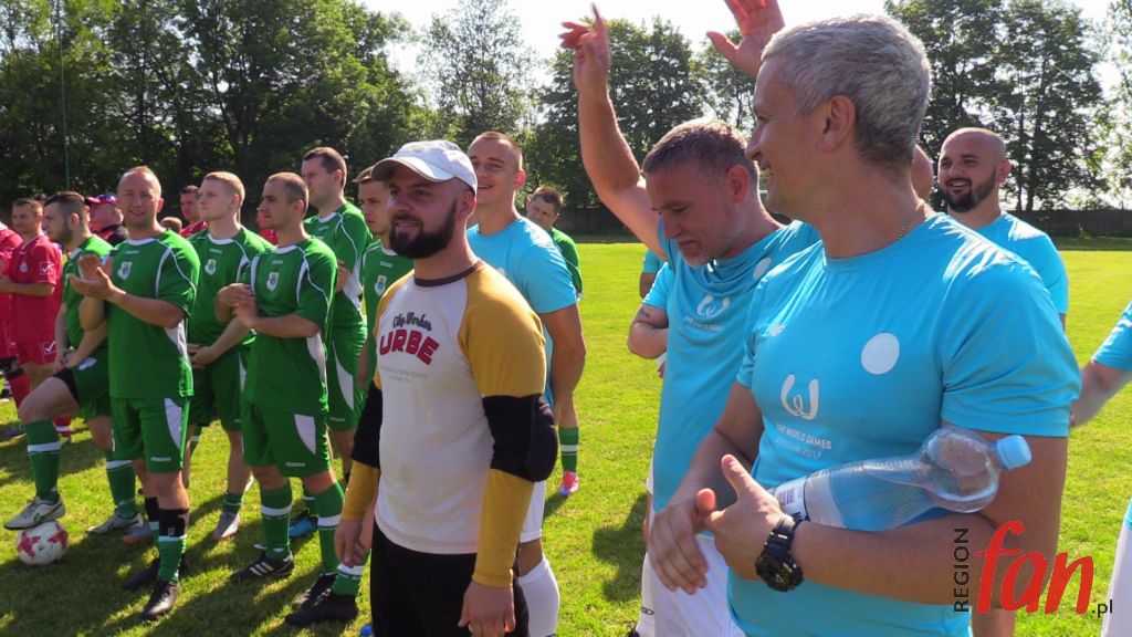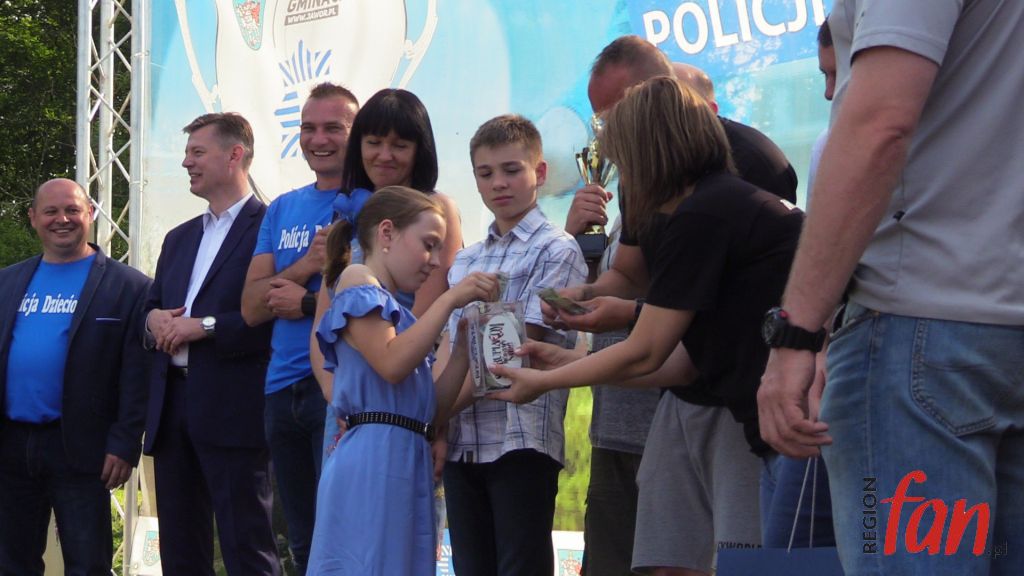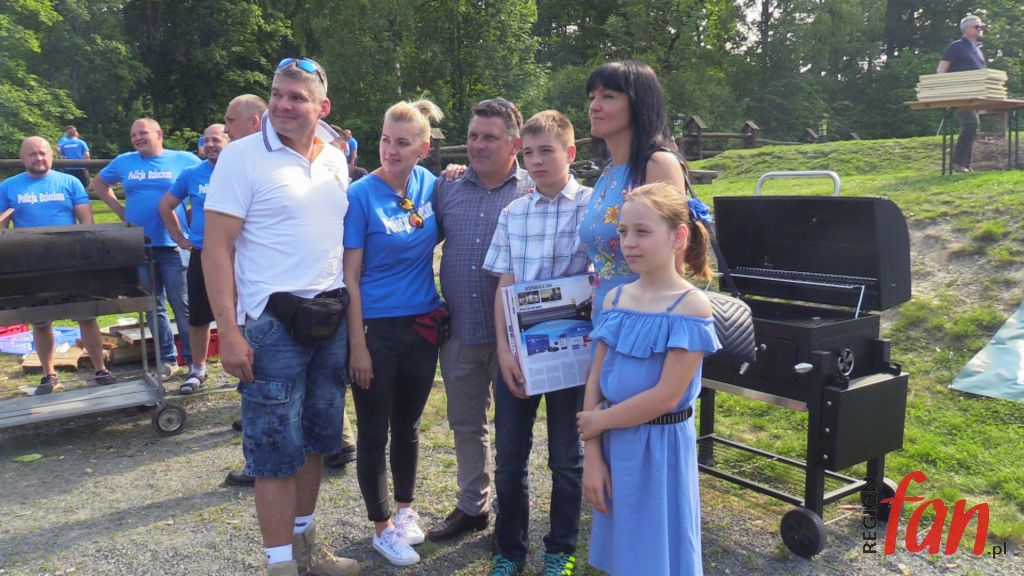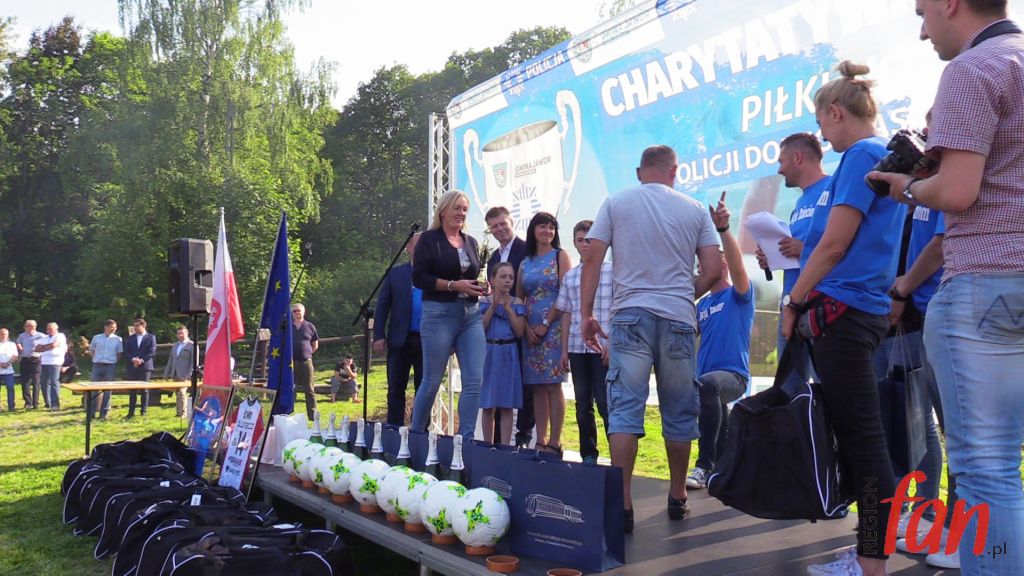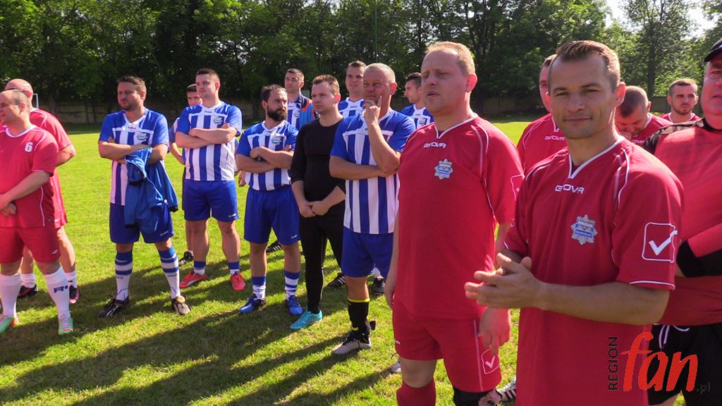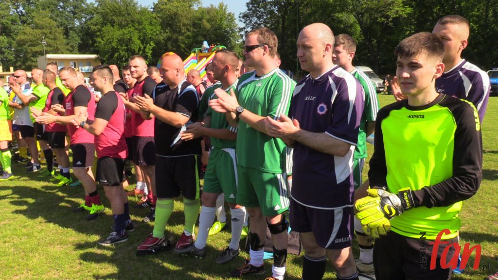 – Zarówno w policji, jaki i w samorządzie jest to służba ludziom. Z perspektywy patrząc, lepiej czuję się w garniturze. To przyjemniejsza i o wiele bezpieczniejsza praca – powiedział włodarz Męcinki. Na dzieci podczas rozgrywek czekały atrakcje. Były kolorowe, dmuchane zjeżdżalnie, pokazy tresury policyjnych psów, stoiska ze sprzętem antyterrorystów, motocykle, słodycze oraz zajęcia, które prowadził mł. asp. Józef Kolanek. Na stadionie zawitał też mobilny ambulans, gdzie można było oddać honorowo krew dla poparzonego w wypadku Kamila Dębickiego. Zarówno na otwarciu imprezy jak i na pikniku licznie stawili się lokalni samorządowcy, którzy od lat wspierają przedsięwzięcie. Obecna była też wdowa po poległym na służbie funkcjonariuszu podkom. Mariuszu Koziarskim. W tym roku właśnie do tej rodziny powędrowała „puszka” z finansowym wsparciem. Licytacje fantów ufundowanych przez sponsorów i zbiórkę przeprowadził Komitet Społeczny Skorupiakom Mówimy NIE, który od lat zajmuje się finansowymi formalnościami charytatywnego turnieju.