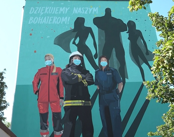 Ratowniczka medyczna, policjantka i strażak są przedstawicielami bohaterów doby koronawirusa, których wizerunki można podziwiać na jednym z polkowickich bloków. Ścianę budynku zdobi okazały mural, który jest ukłonem samorządowców dla zapracowanych w ostatnim czasie służb. Oprócz malunku, wyrazem wdzięczności, jest okrągły milion wręczony przedstawicielom mundurówki i służb medycznych podczas uroczystej prezentacji muralu.