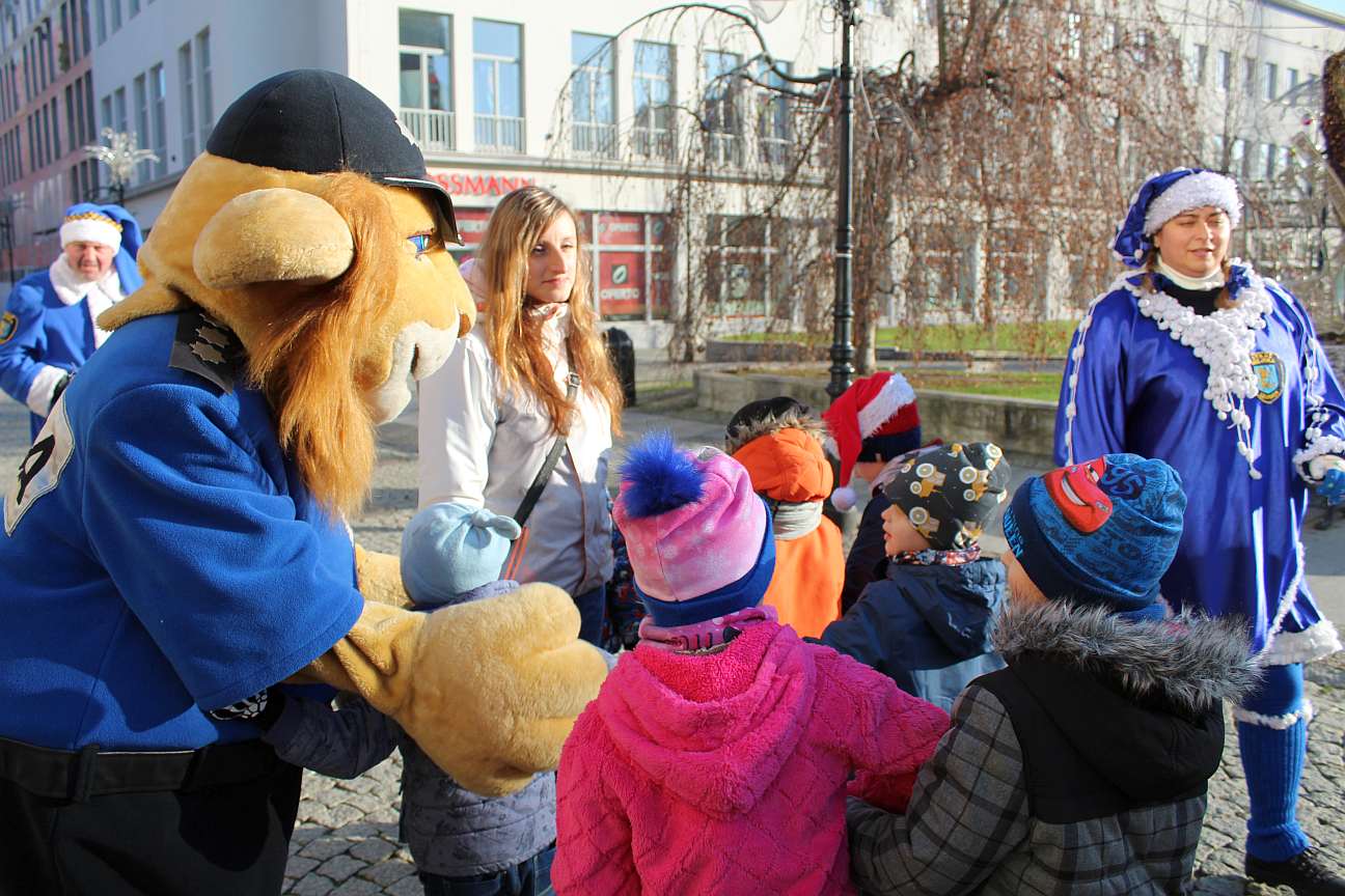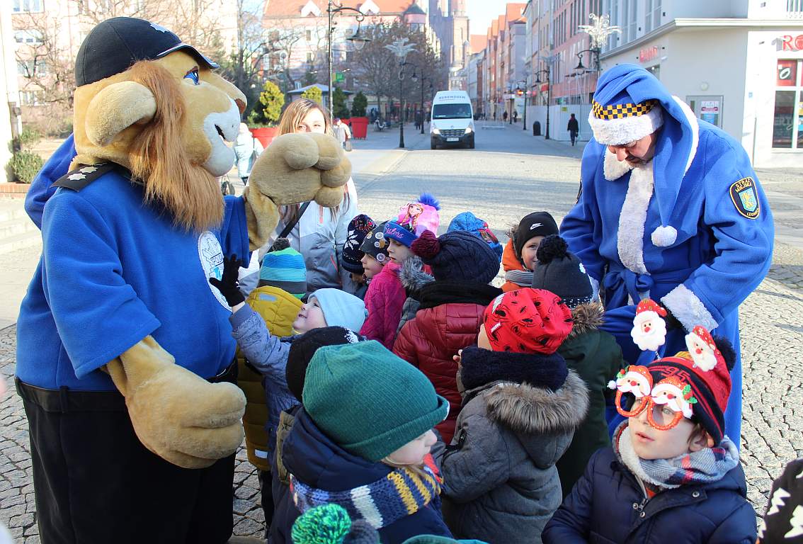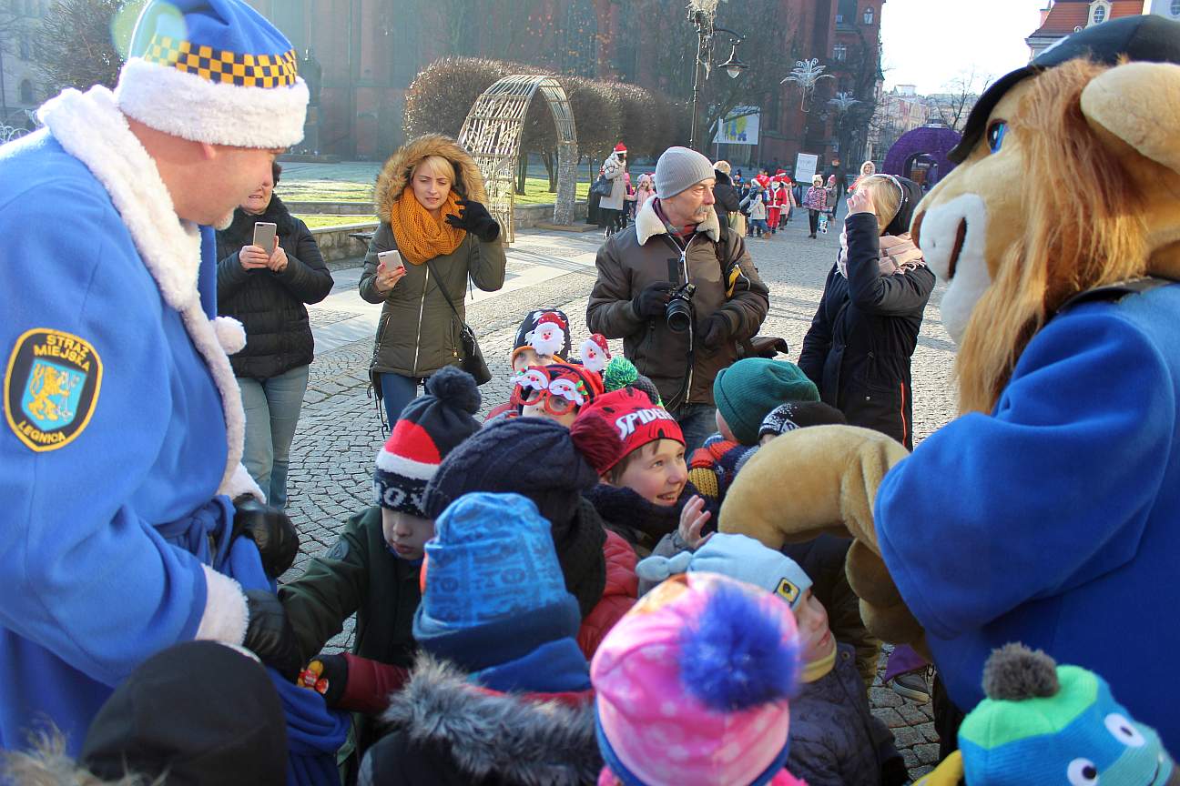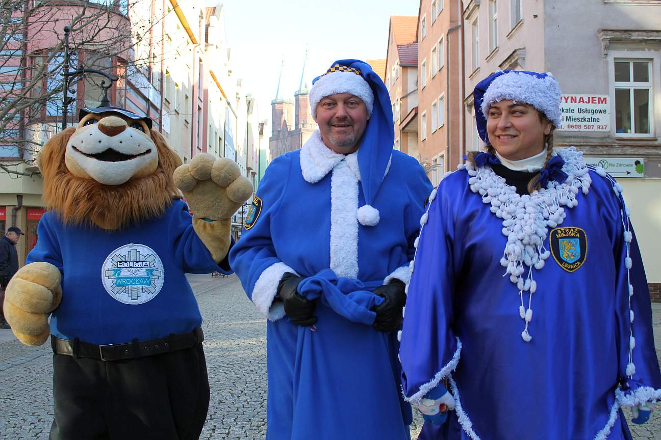 Zwykle łączą siły np., gdy trzeba karać kierowców bagatelizujących zakaz parkowania. Dziś wspólnie ruszyli w miasto, by wywoływać uśmiech na twarzach przechodniów. Legniccy strażnicy miejscy w asyście policjantów spacerowali deptakiem, rozdawali cukierki, pozowali do zdjęć. Gwiazdami wydarzenia byli oczywiście: Niebieski Mikołaj oraz Komisarz Lew.