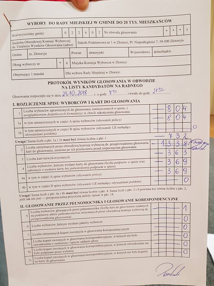 Co najmniej kilku kandydatów startujących do złotoryjskiej rady miejskiej zamierza złożyć protesty wyborcze w związku z nieprawidłowościami, do jakich miało dojść podczas niedzielnych wyborów.
