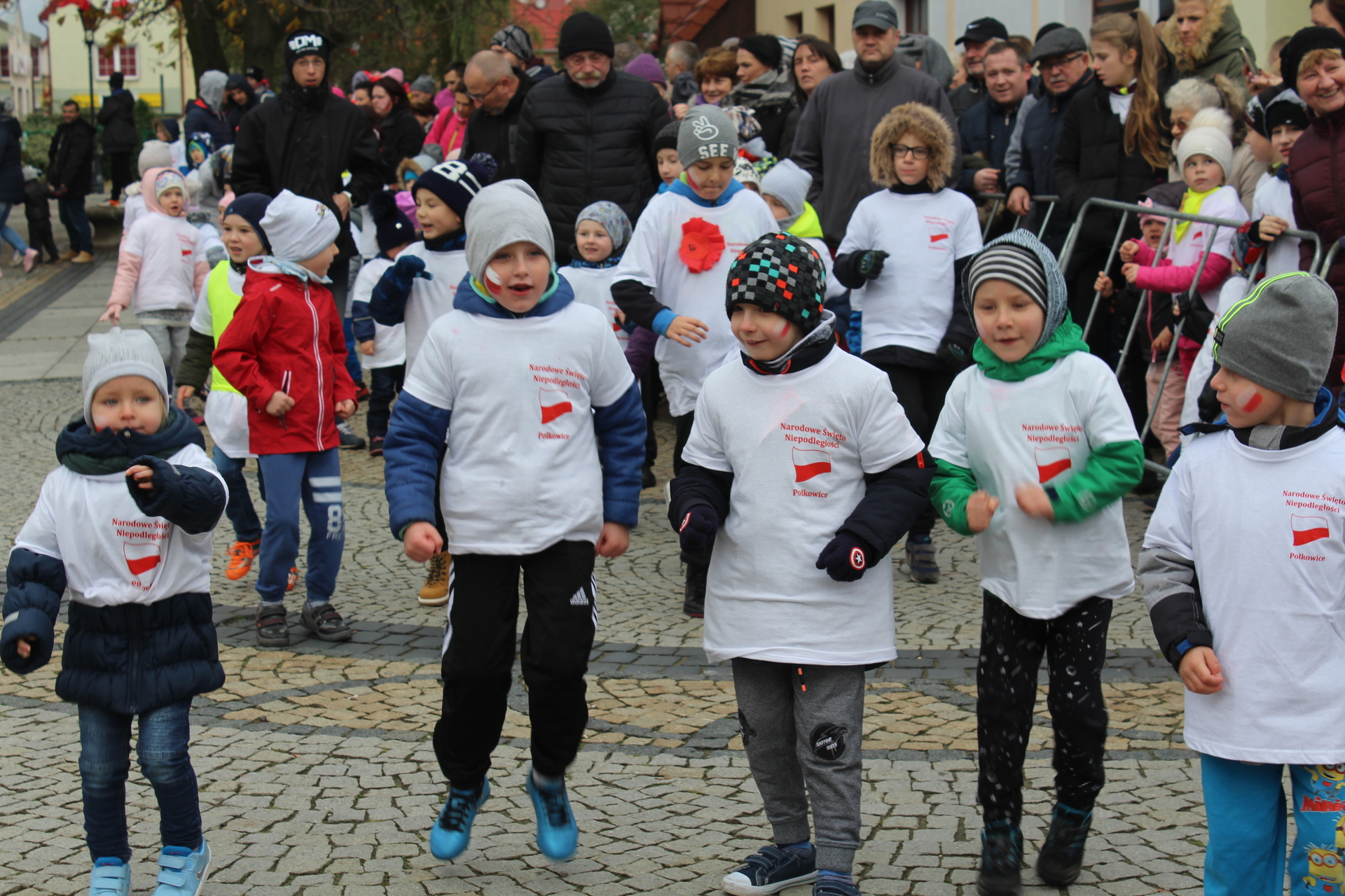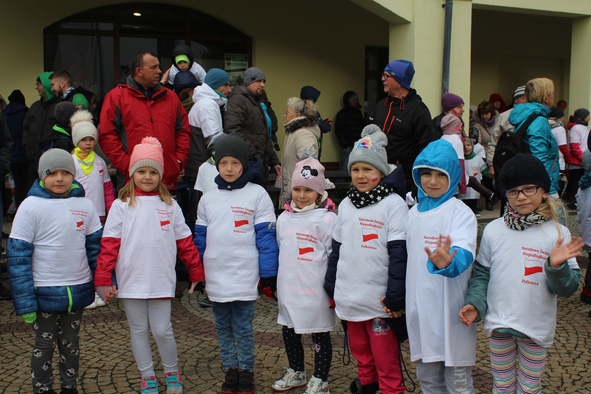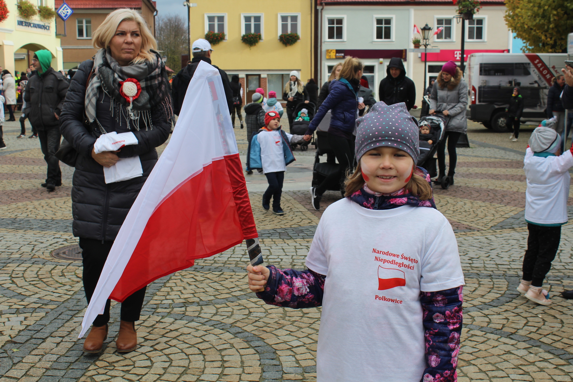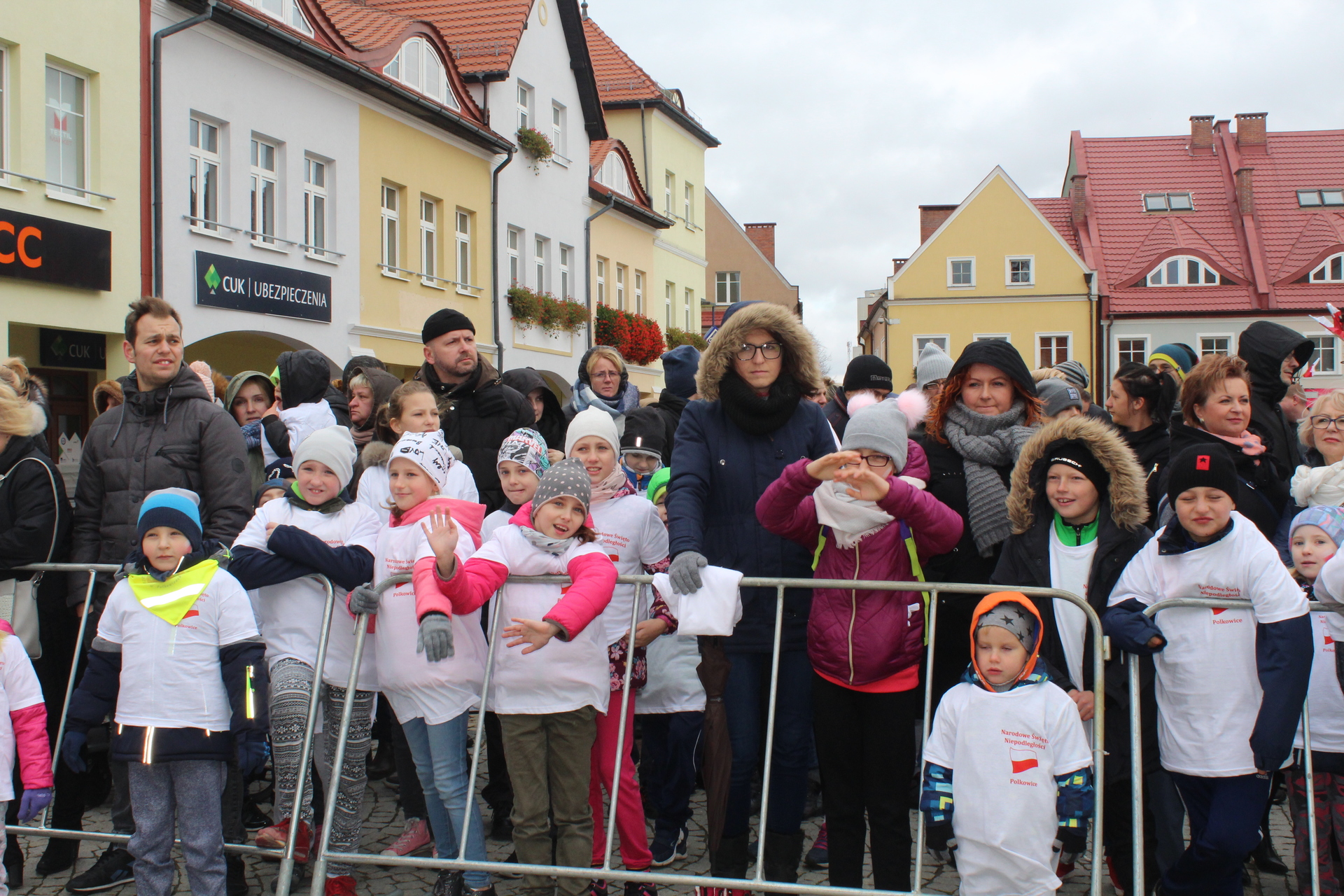 Mimo wietrznej aury w polkowickim Rynku zebrało się dziś wielu mieszkańców, aby w patriotyczno-sportowej atmosferze obchodzić Święto Niepodległości.