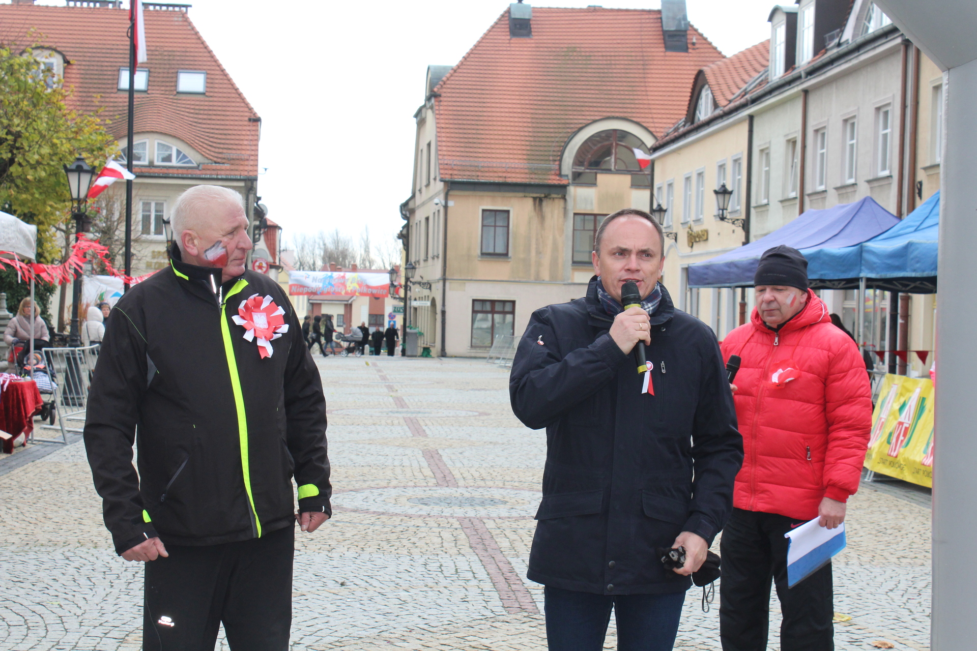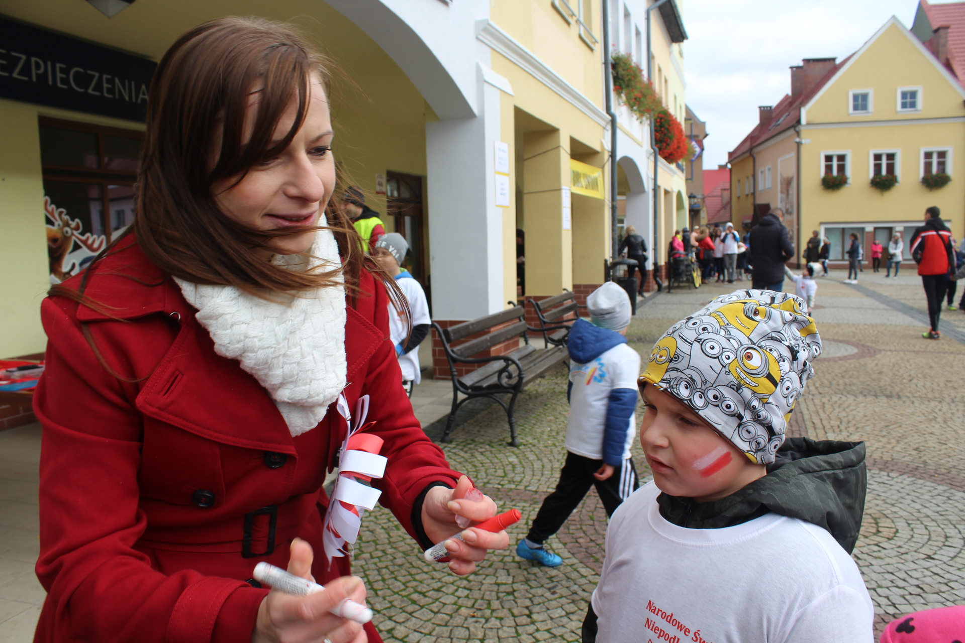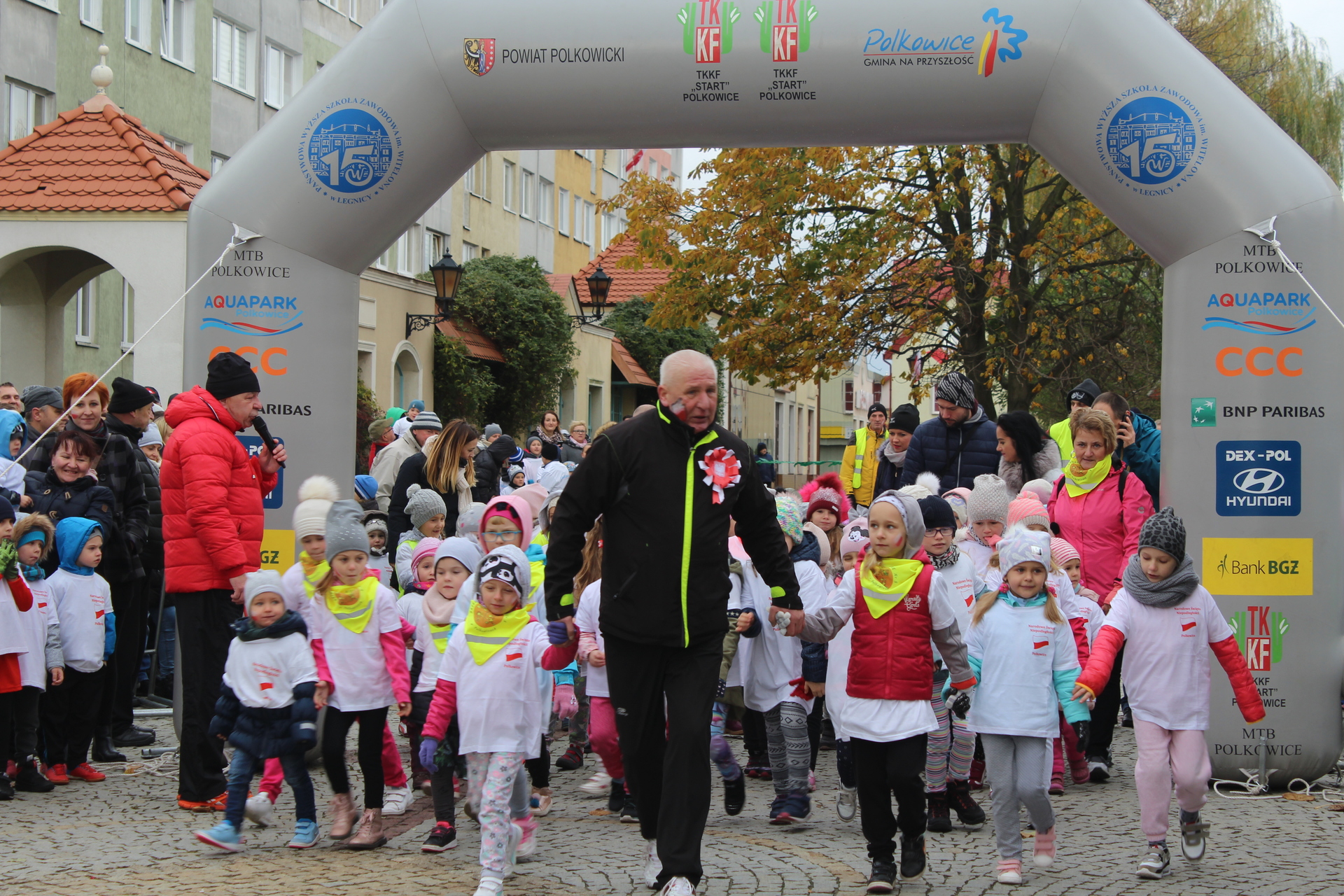 Mimo wietrznej aury w polkowickim Rynku zebrało się dziś wielu mieszkańców, aby w patriotyczno-sportowej atmosferze obchodzić Święto Niepodległości.