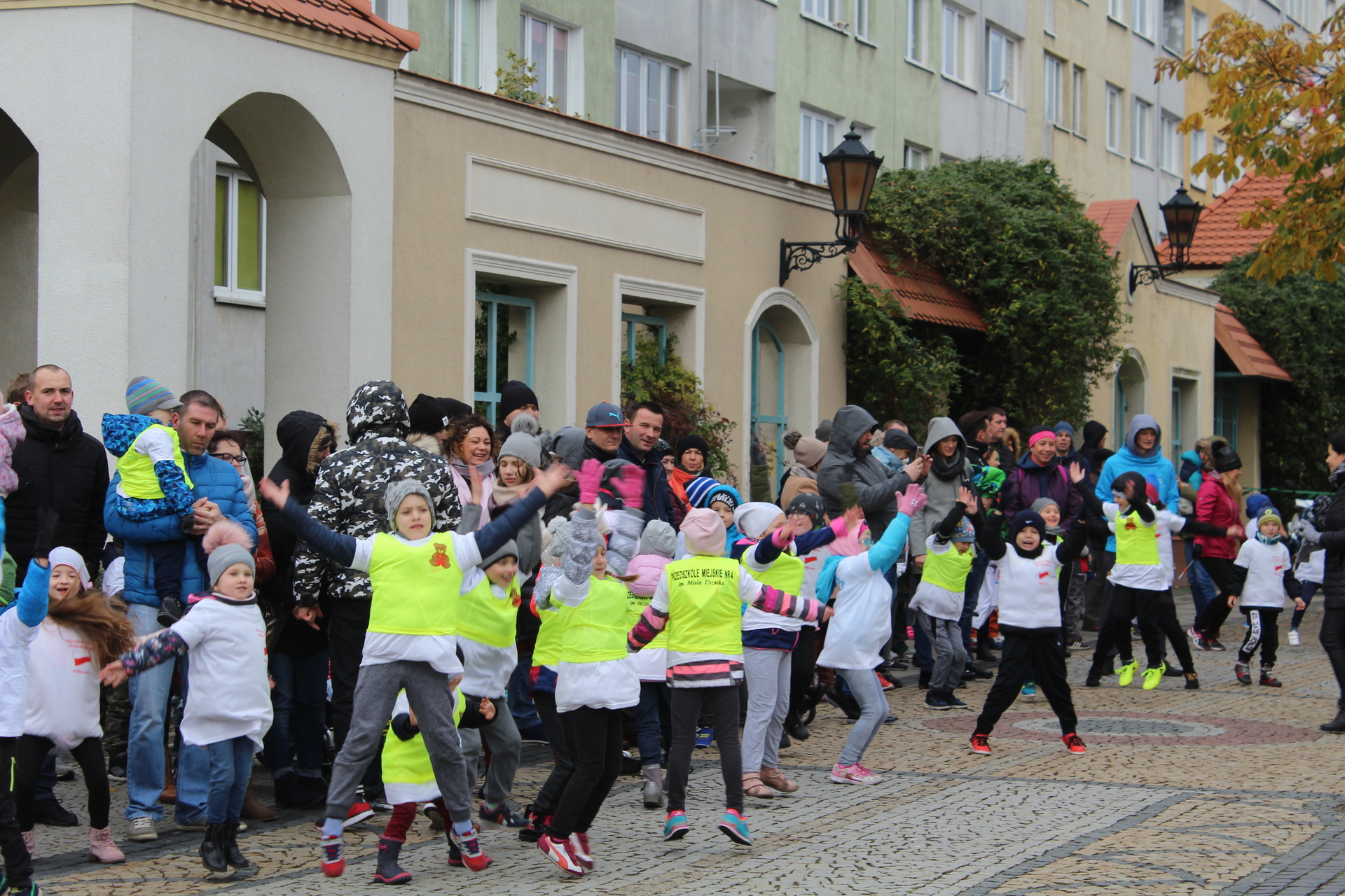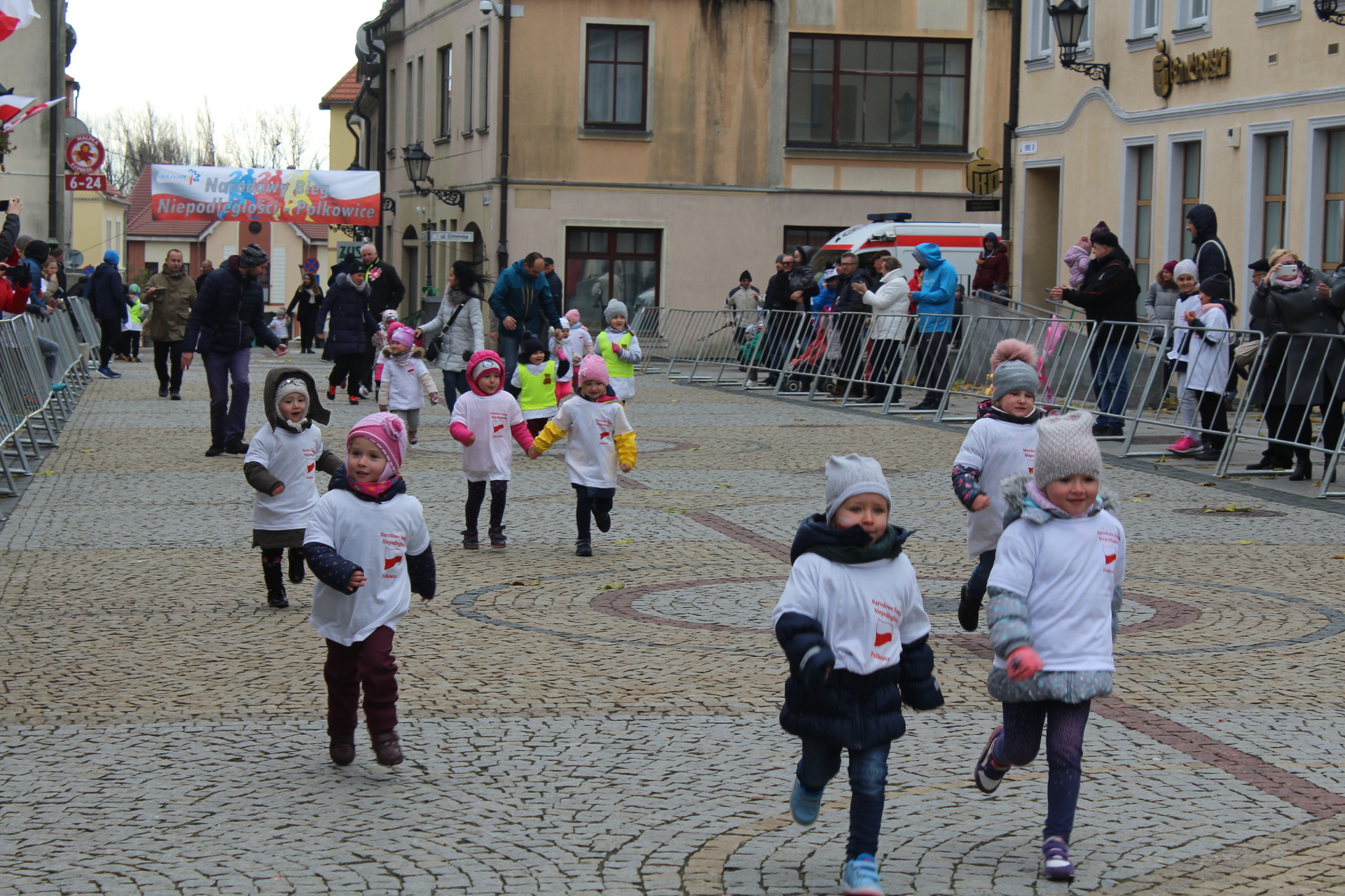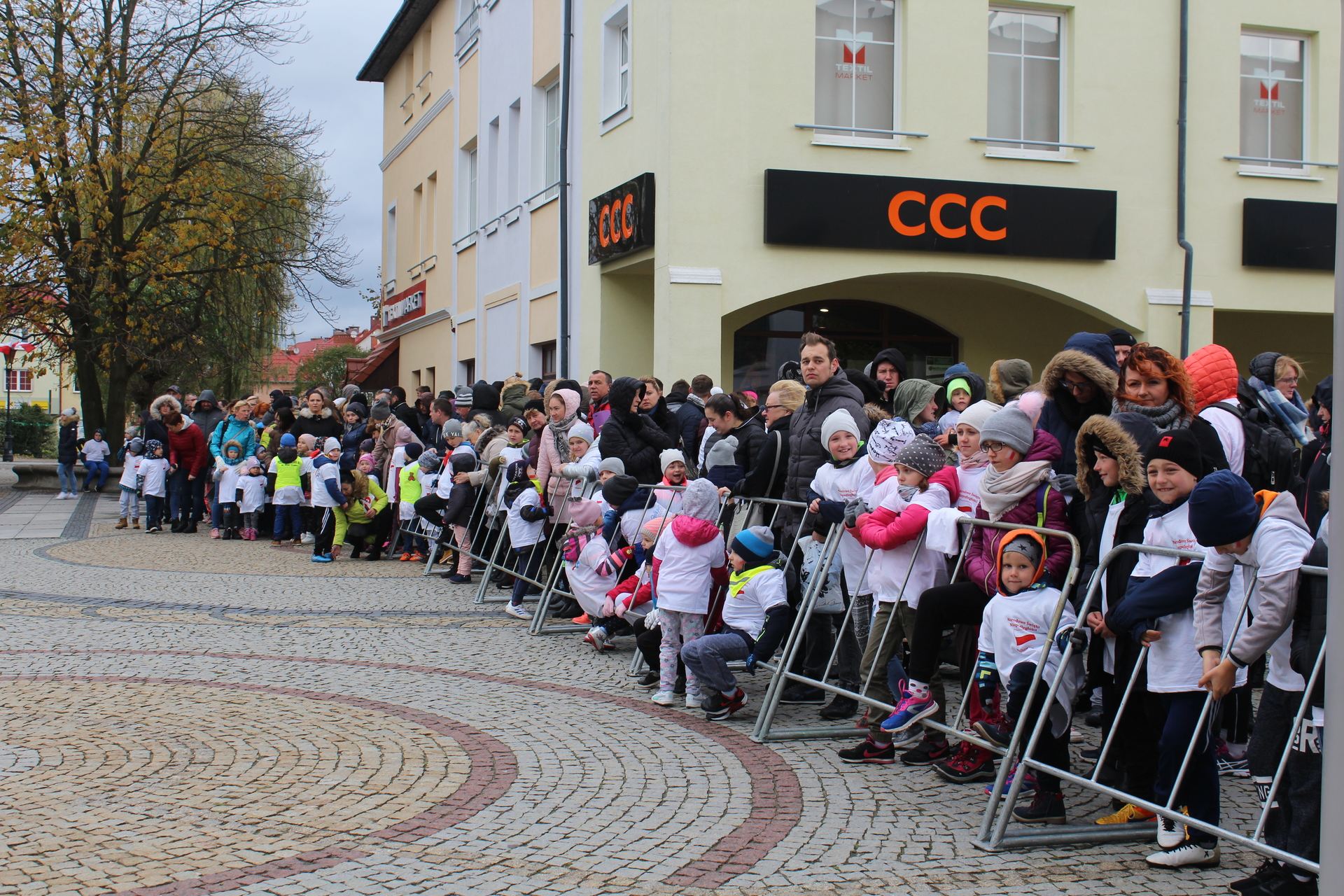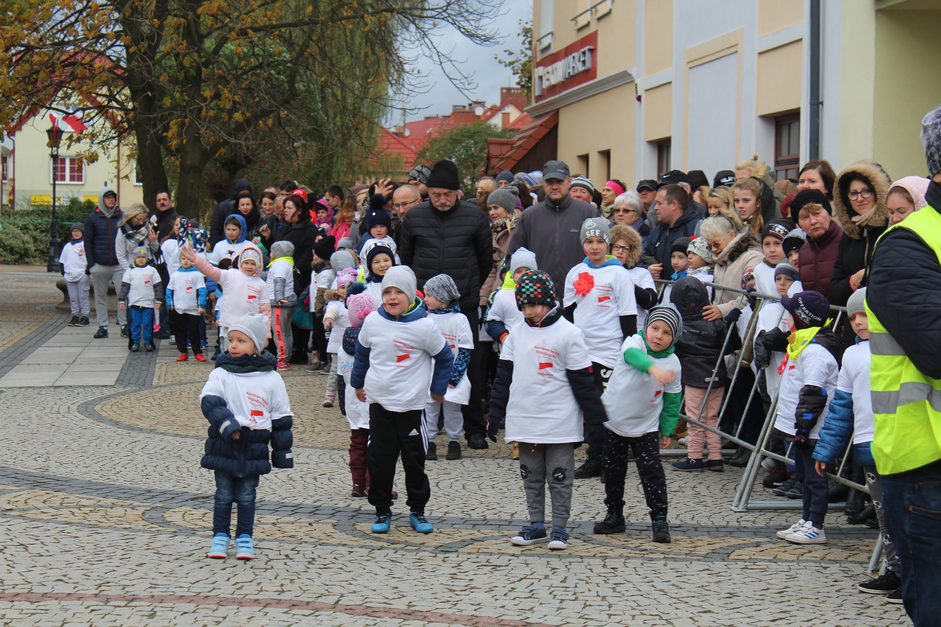Mimo wietrznej aury w polkowickim Rynku zebrało się dziś wielu mieszkańców, aby w patriotyczno-sportowej atmosferze obchodzić Święto Niepodległości.