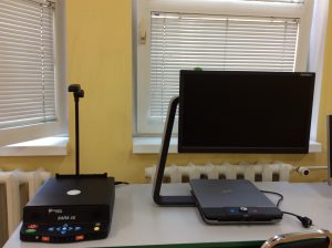 Wśród zakupionych urządzeń znajduje się powiększalnik stacjonarny, który poprawia jakość odczytywanych treści przez osoby słabowidzące: