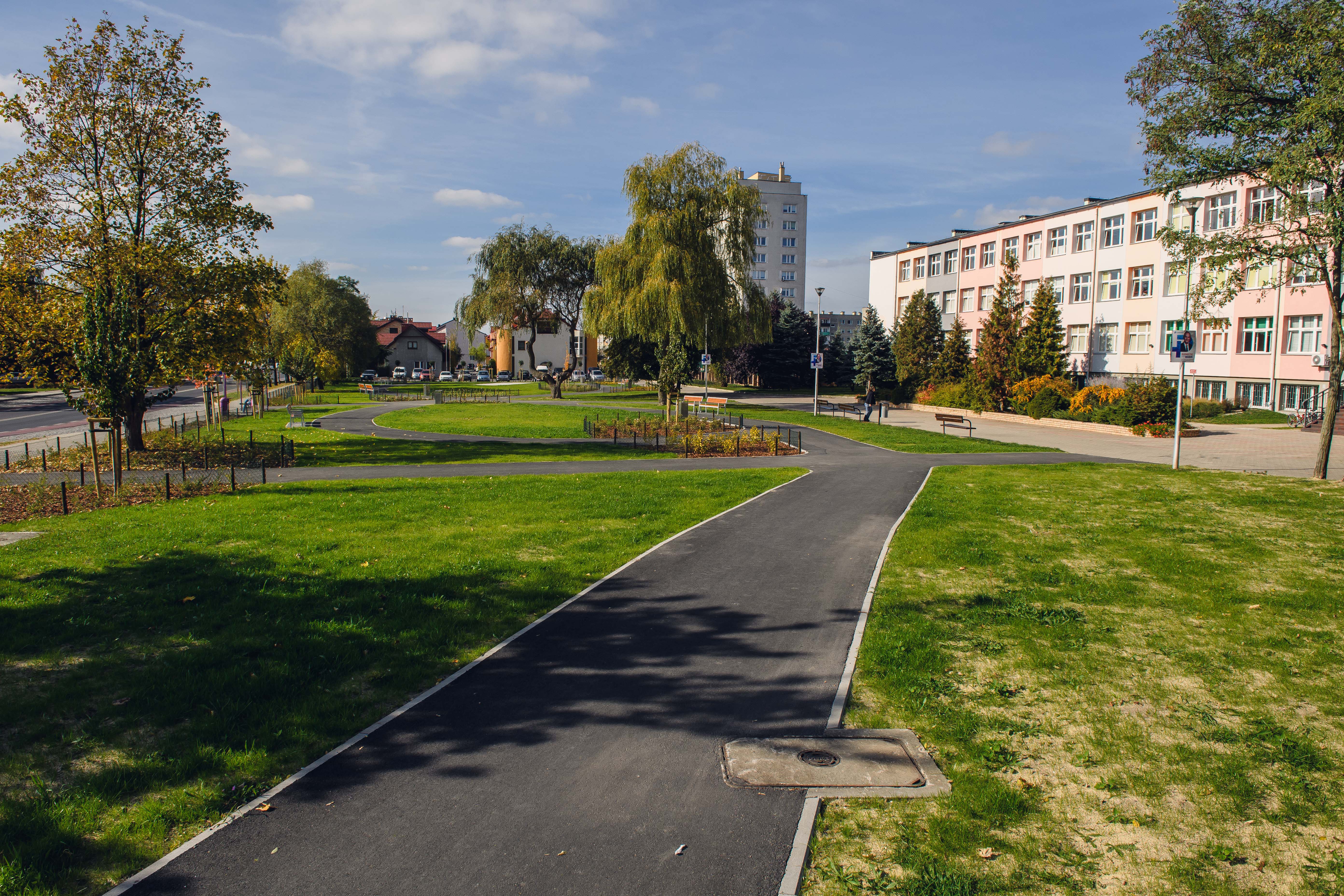 Deptak prowadzi do skweru przy Szkole Podstawowej nr 2, który też został przebudowany w ramach jednej inwestycji. Są tam nowe ławki, trasa rolkowa i plac do gry w bule.