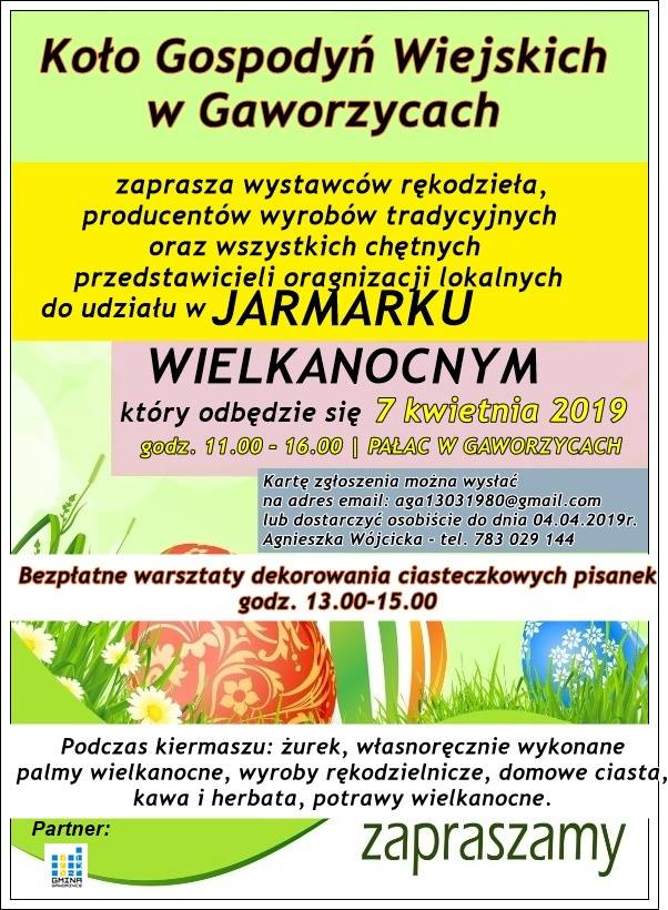 – Podczas Jarmarku zostanie przeprowadzony konkurs na babkę wielkanocną, odbędą się warsztaty dekorowania ciasteczkowych pisanek oraz po raz pierwszy mieszkańcy gminy udekorują pisankami drzewko wielkanocne – informują organizatorzy. – Liczymy, że zawiesimy na drzewku dużo ozdób. Dlatego zachęcamy dzieci, młodzież i starszych do przygotowania świątecznych dekoracji.