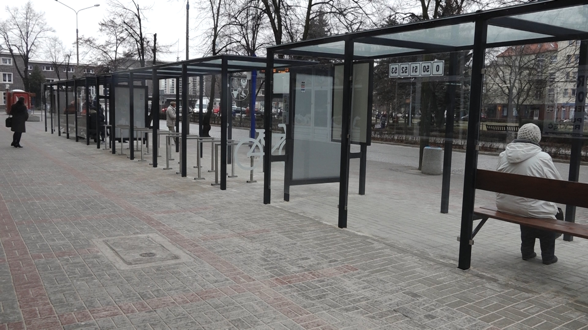 Na Placu Tysiąclecia stanęły trzy wiaty. Dwie z nich przeznaczone są dla pasażerów komunikacji miejskiej.