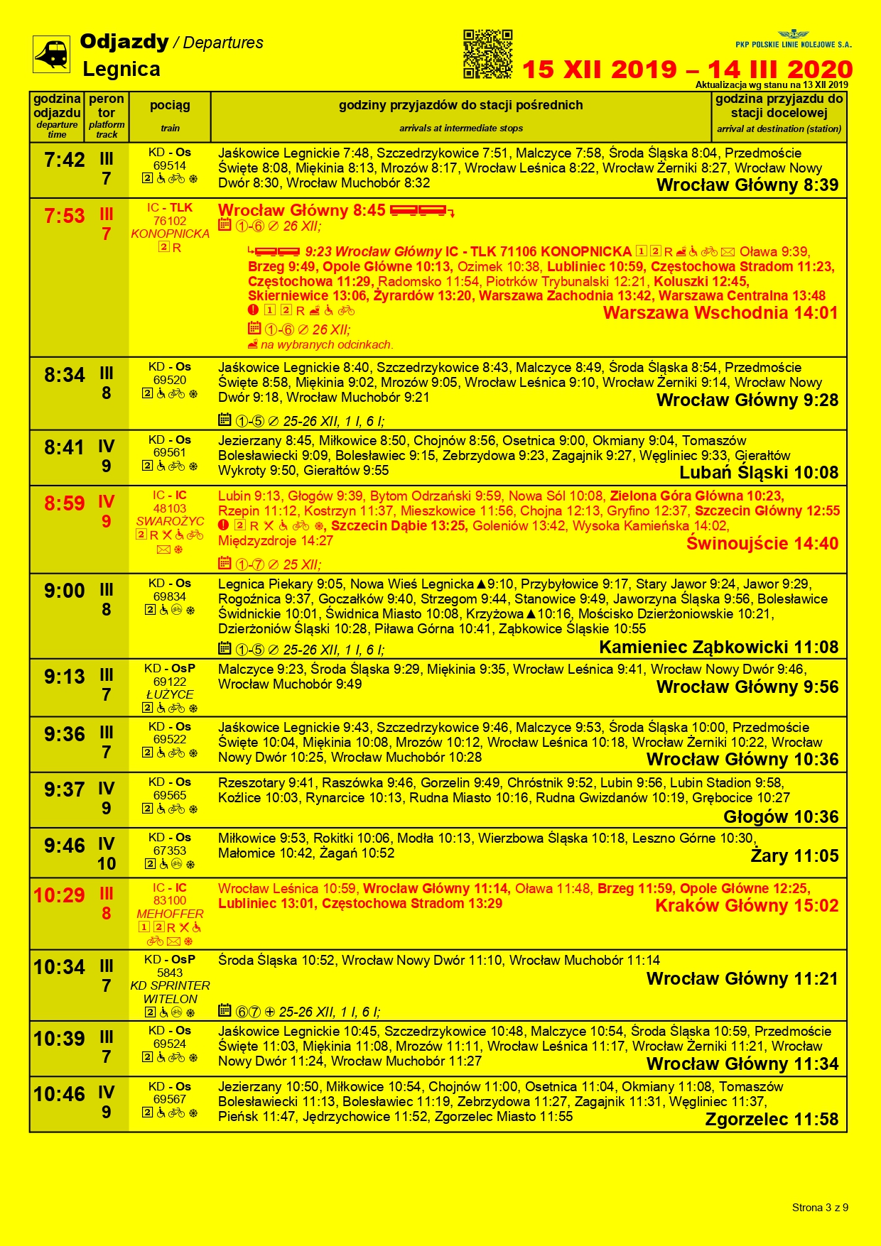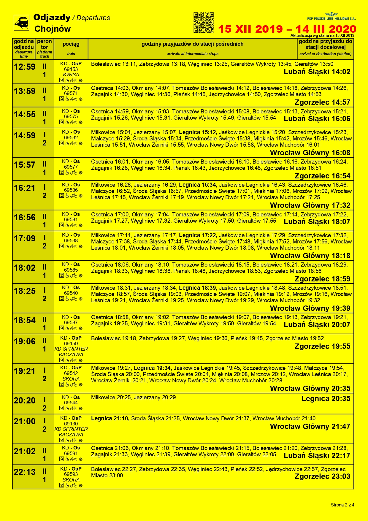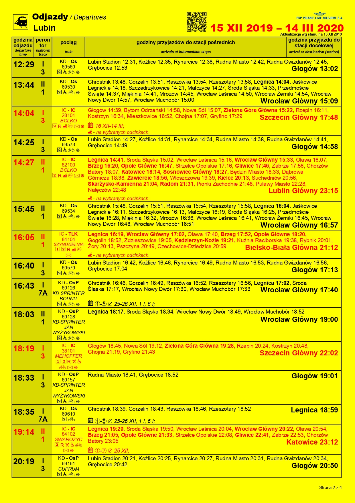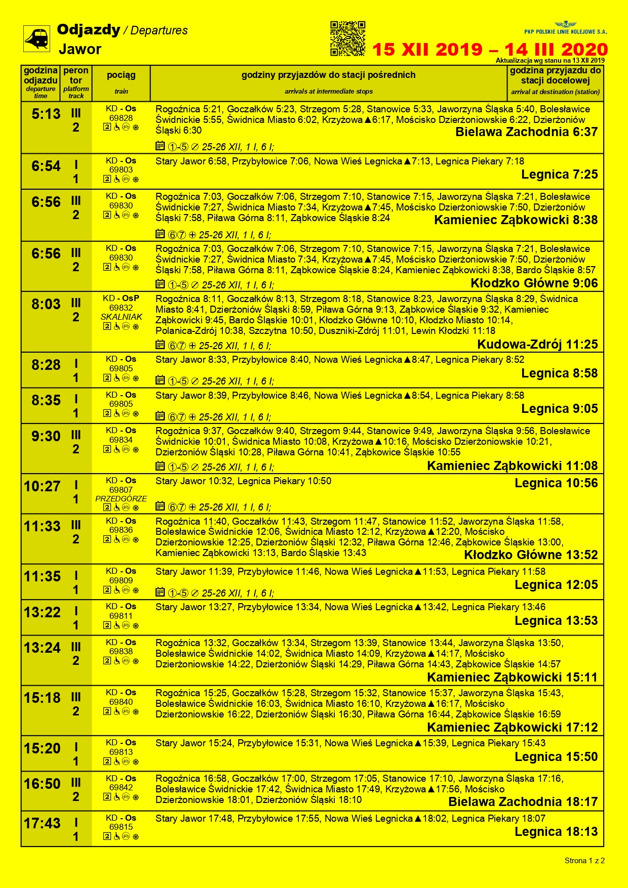 Od wczoraj pociągi w całej Polsce kursują według zaktualizowanego rozkładu jazdy. Prezentujemy nowe tablice kursów dla połączeń z miast naszego subregionu.