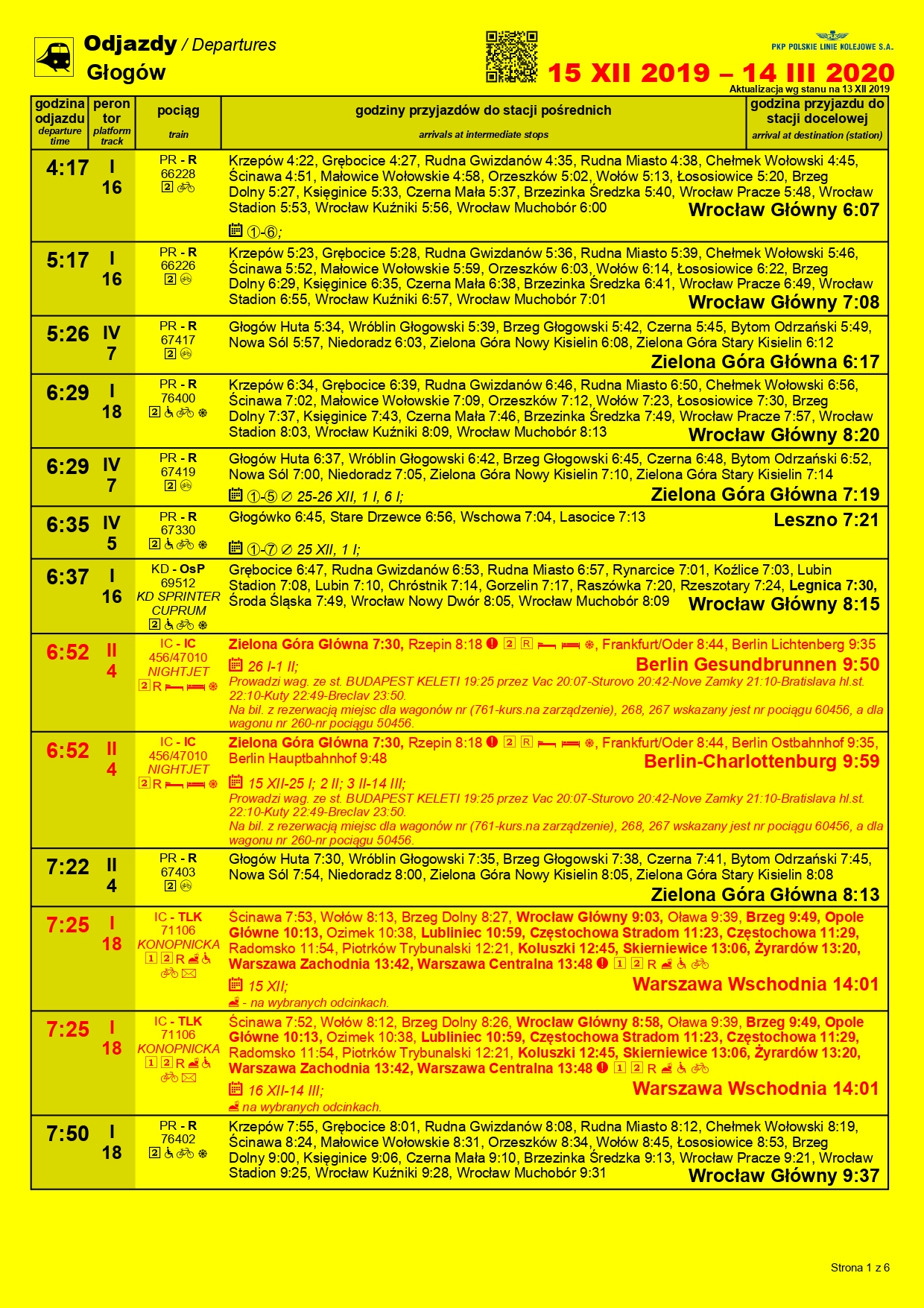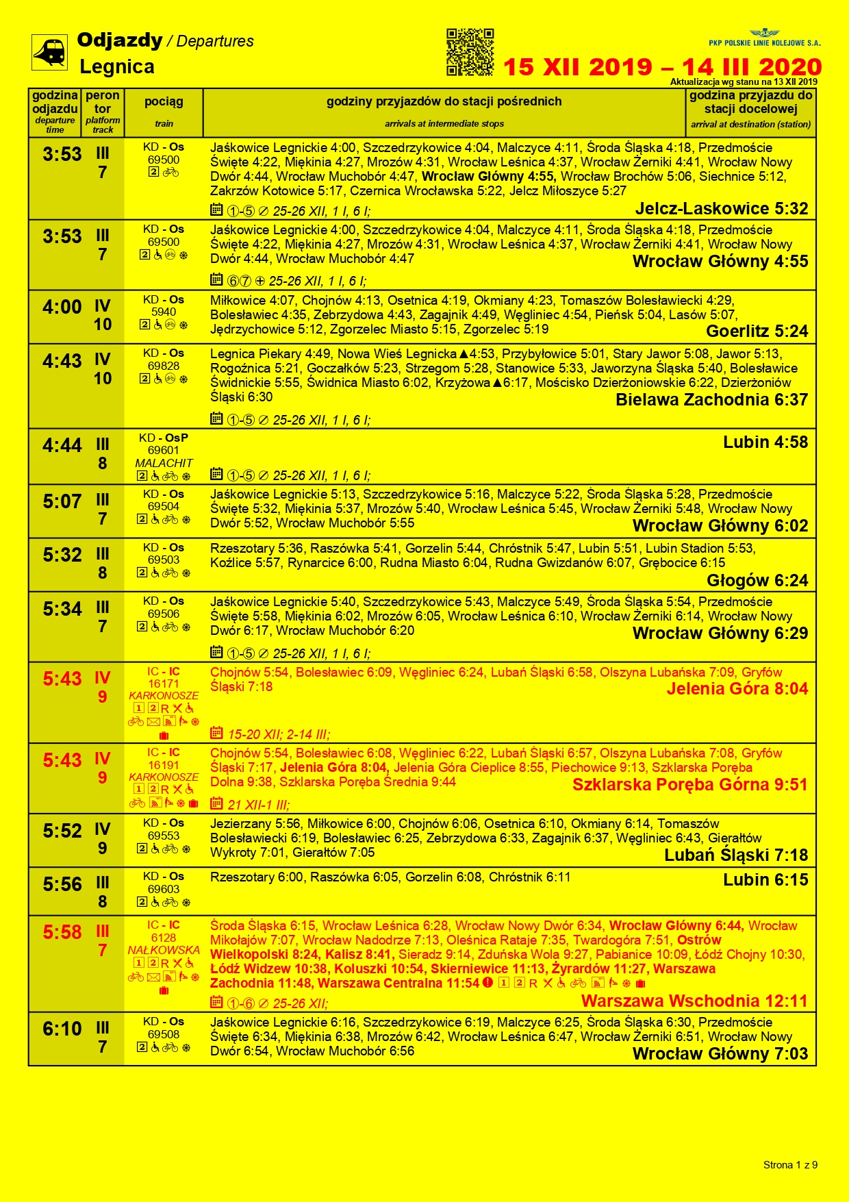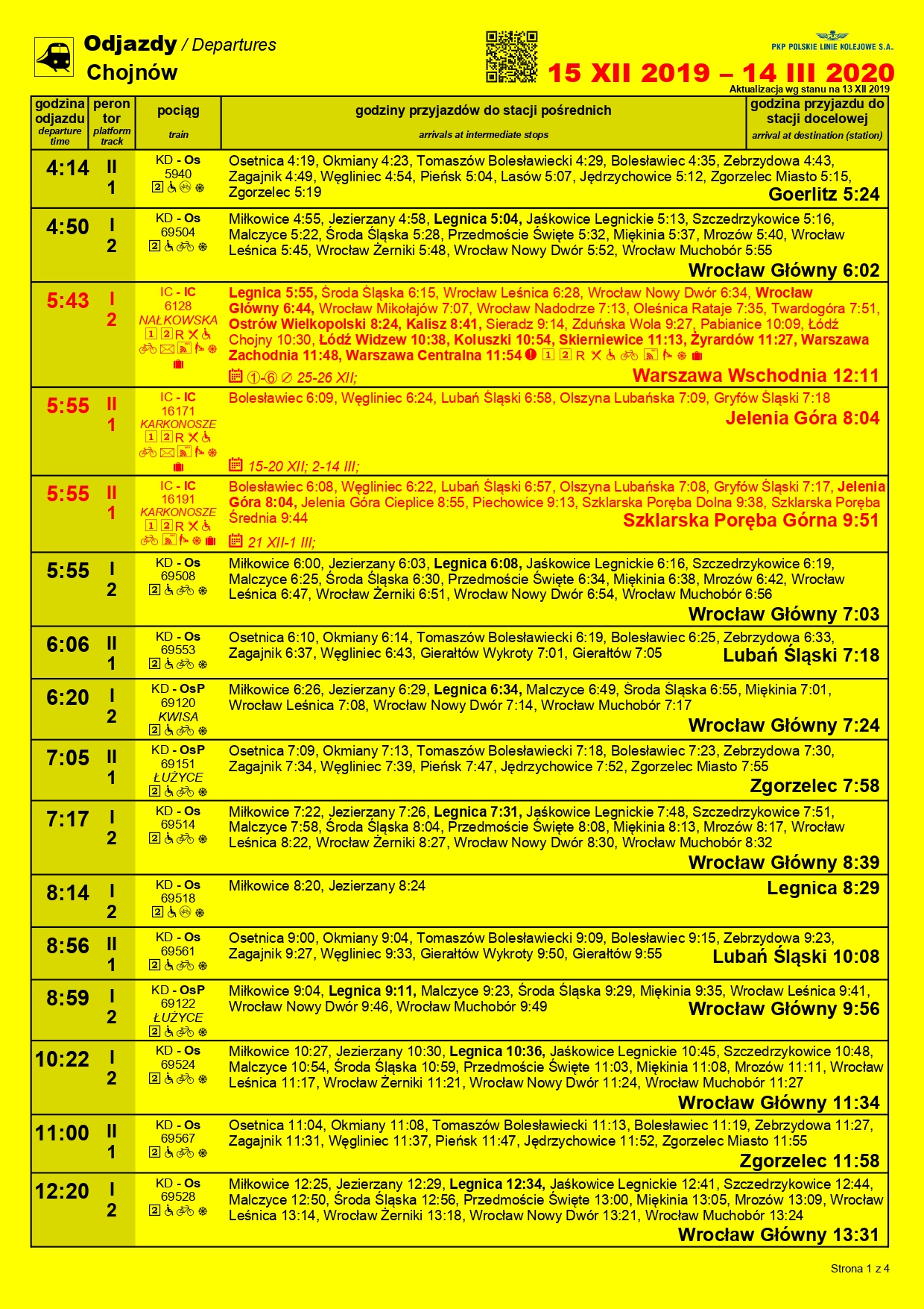 Od wczoraj pociągi w całej Polsce kursują według zaktualizowanego rozkładu jazdy. Prezentujemy nowe tablice kursów dla połączeń z miast naszego subregionu.
