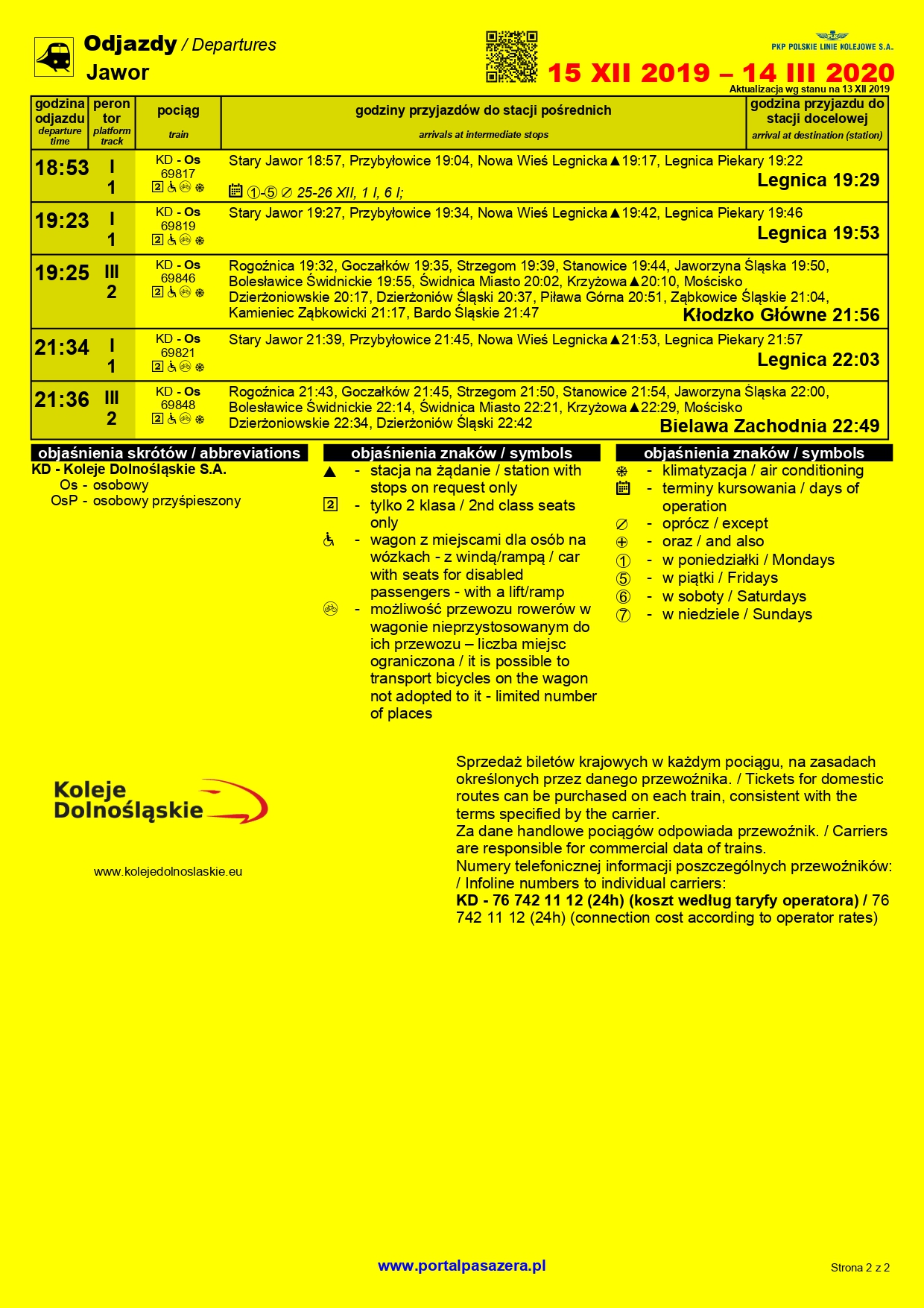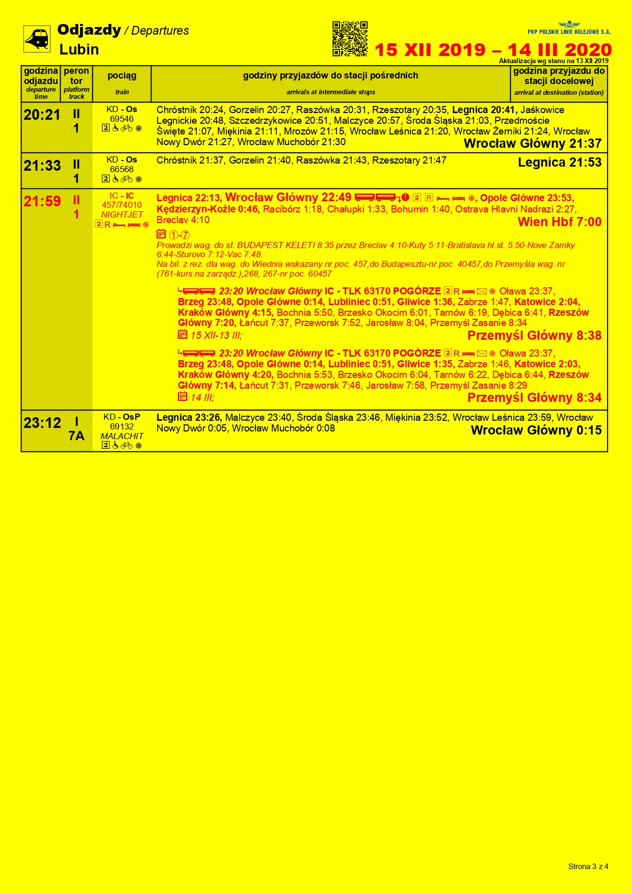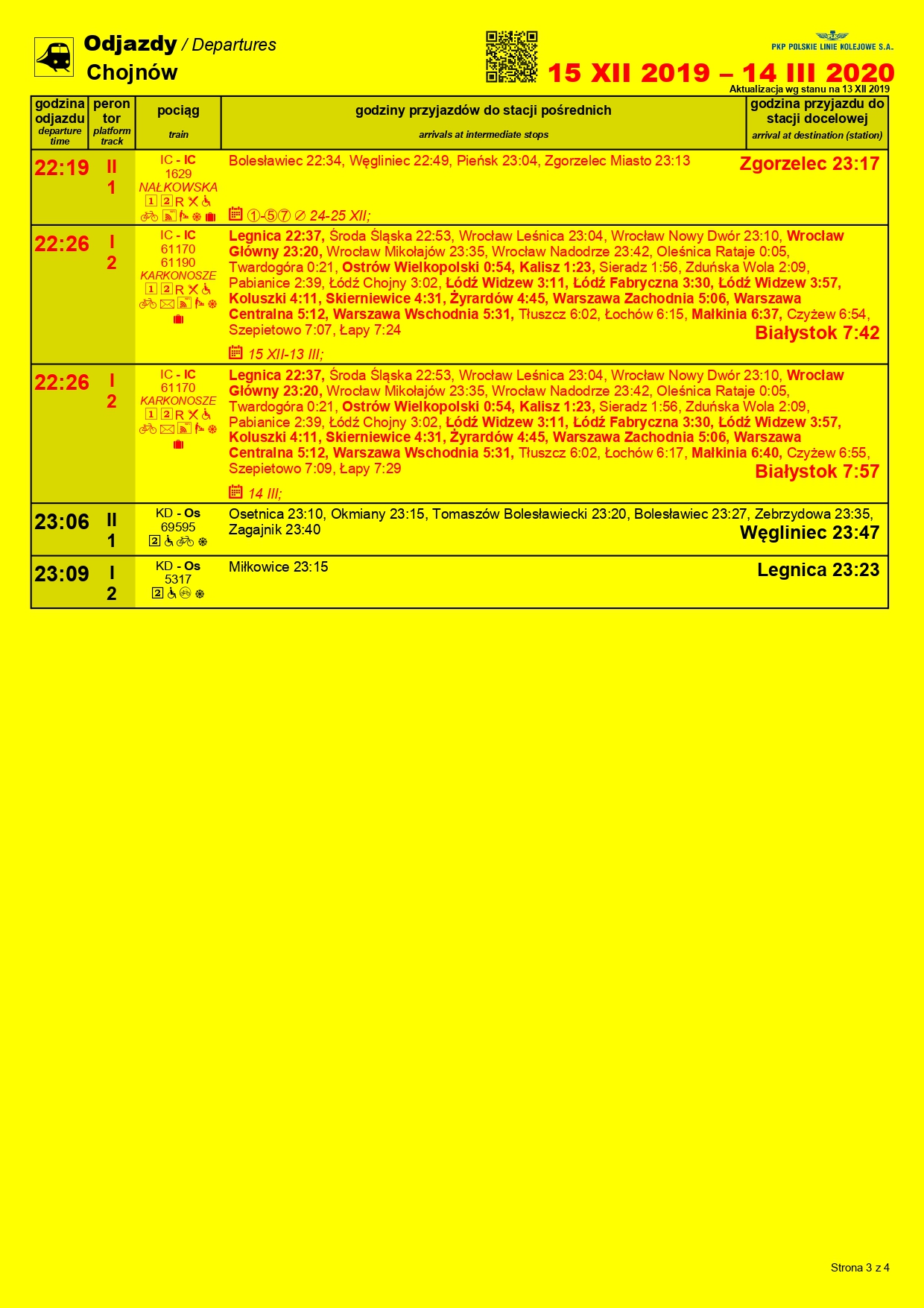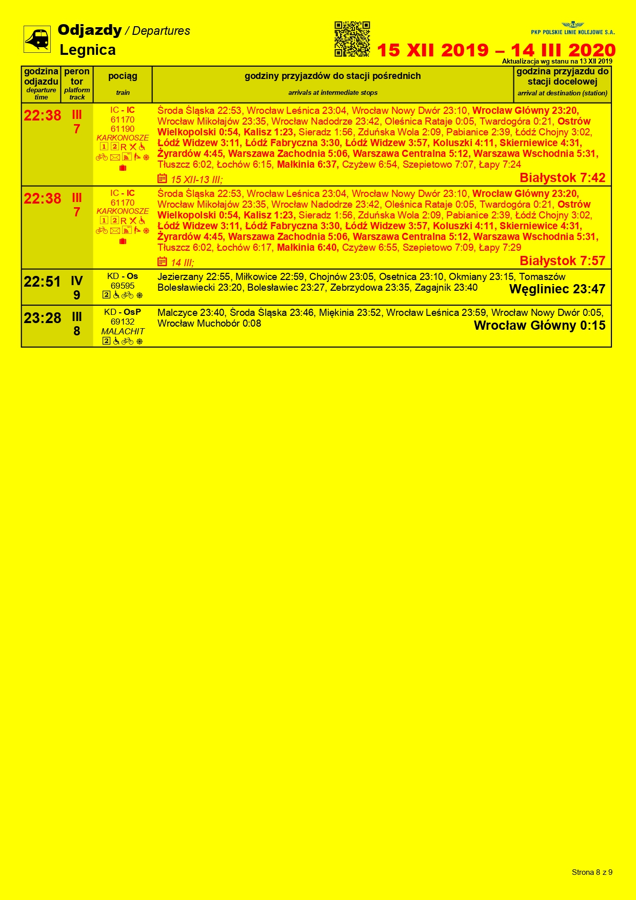 Od wczoraj pociągi w całej Polsce kursują według zaktualizowanego rozkładu jazdy. Prezentujemy nowe tablice kursów dla połączeń z miast naszego subregionu.