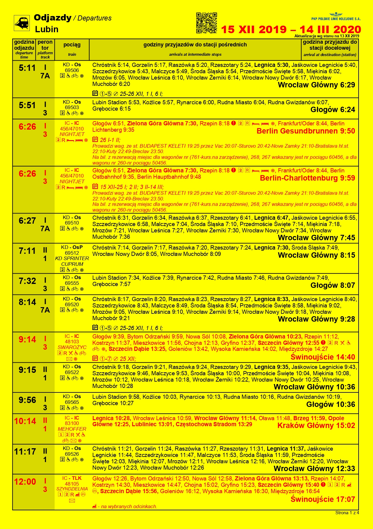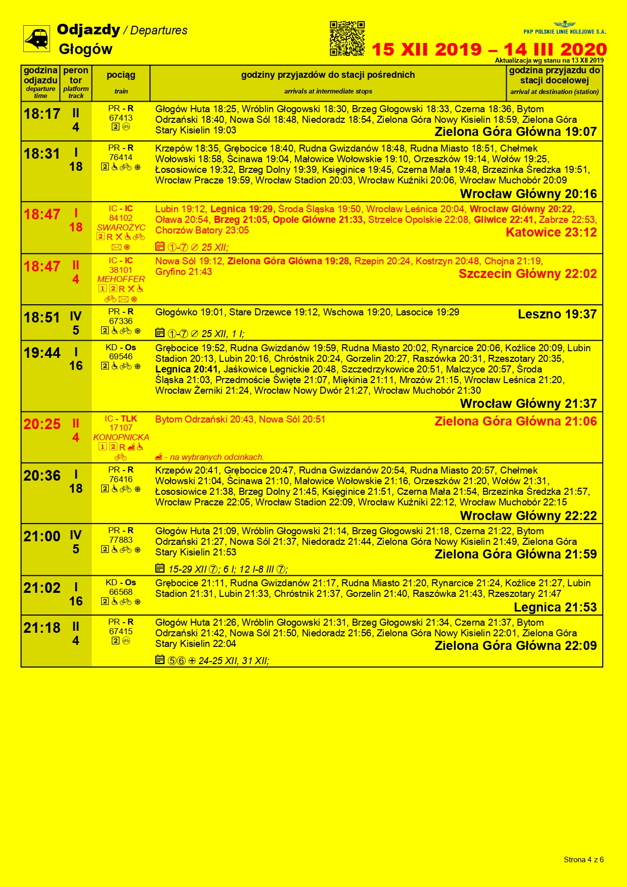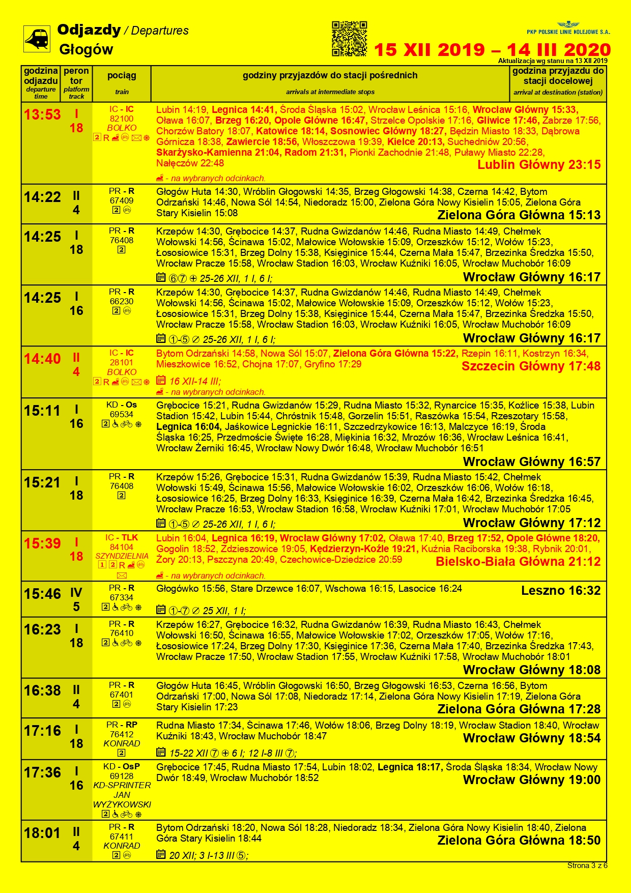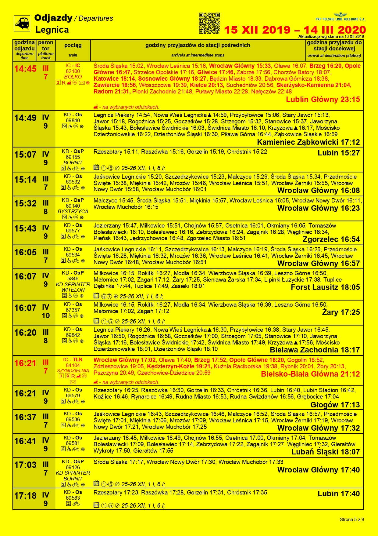 Zimowa korekta rozkładu jazdy wprowadziła nie tylko nowe połączenia lokalne, jak chociażby bezpośredni kurs z Głogowa przez Lubin do Legnicy, z Legnicy do Bielawy, czy z Głogowa do Leszna.