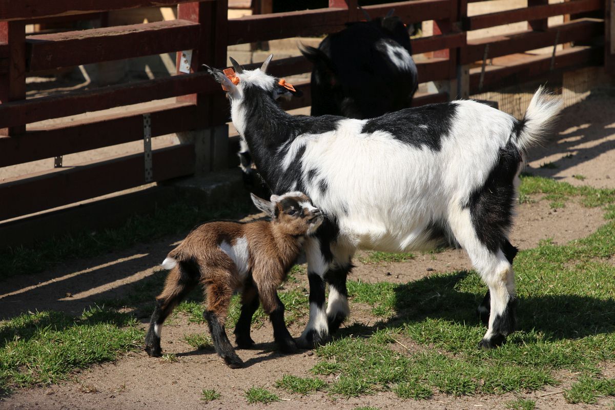 Niedawno w zoo urodziło się pięć kóz karłowatych – dwa capy i trzy kozy. Jak mówią opiekunowie, maluchy są rozbrykane i radosne. Codziennie wypuszczane są na wybieg, gdzie bawią się pod czujnym okiem swoich mam.